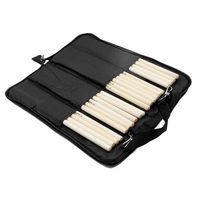 Two separate compartments for storage - one main zipped compartment for sticks(8 pairs at least); the other for sheet music, straps, and other accessories.