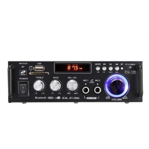 With Bluetooth, remote control, USB SD Jack, FM Radio, Karaoke with reverb, can connect 7 speakers + 1 active subwoofer.