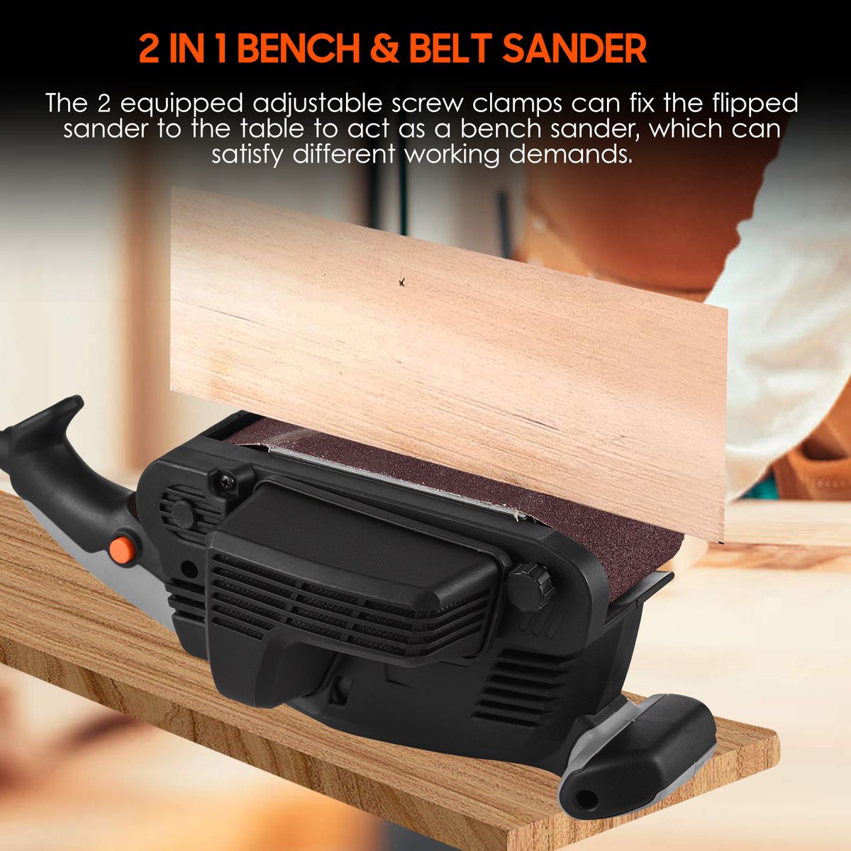 2 in 1 Bench amp; Belt Sander -- The 2 equipped adjustable screw clamps can fix the flipped sander to the table to act as a bench sander, which can satisfy different working demands.