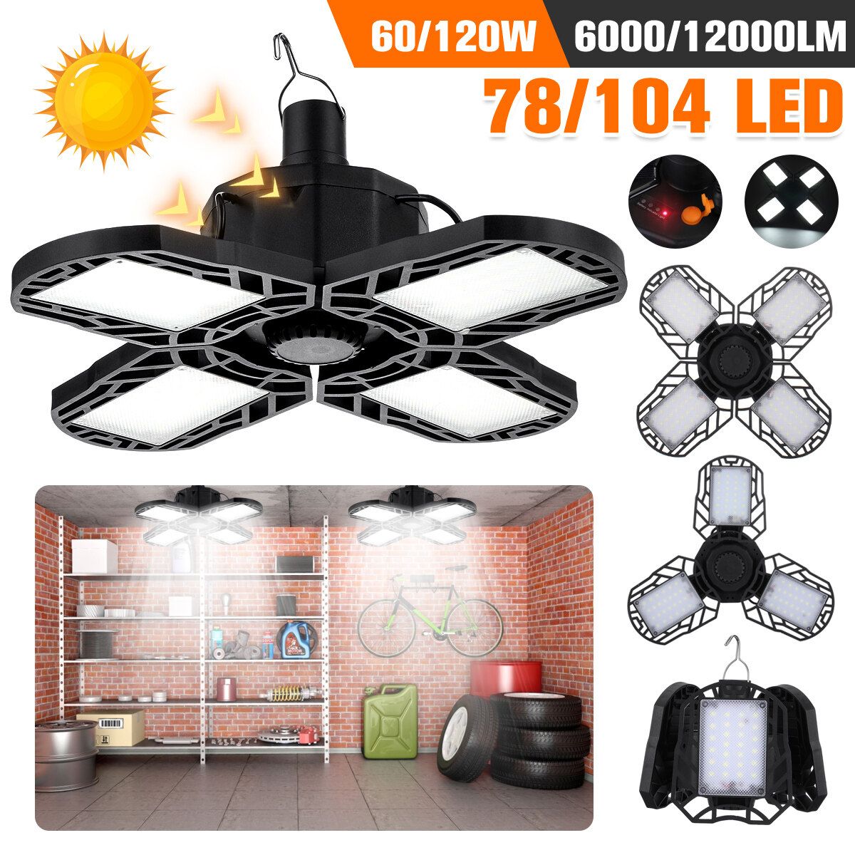60/120W 78/104LED Adjustable LED Garage Lights Shop 90 Angle Adjustable 4 Gear Display Deformable Ceiling Light Fixtures Lamp