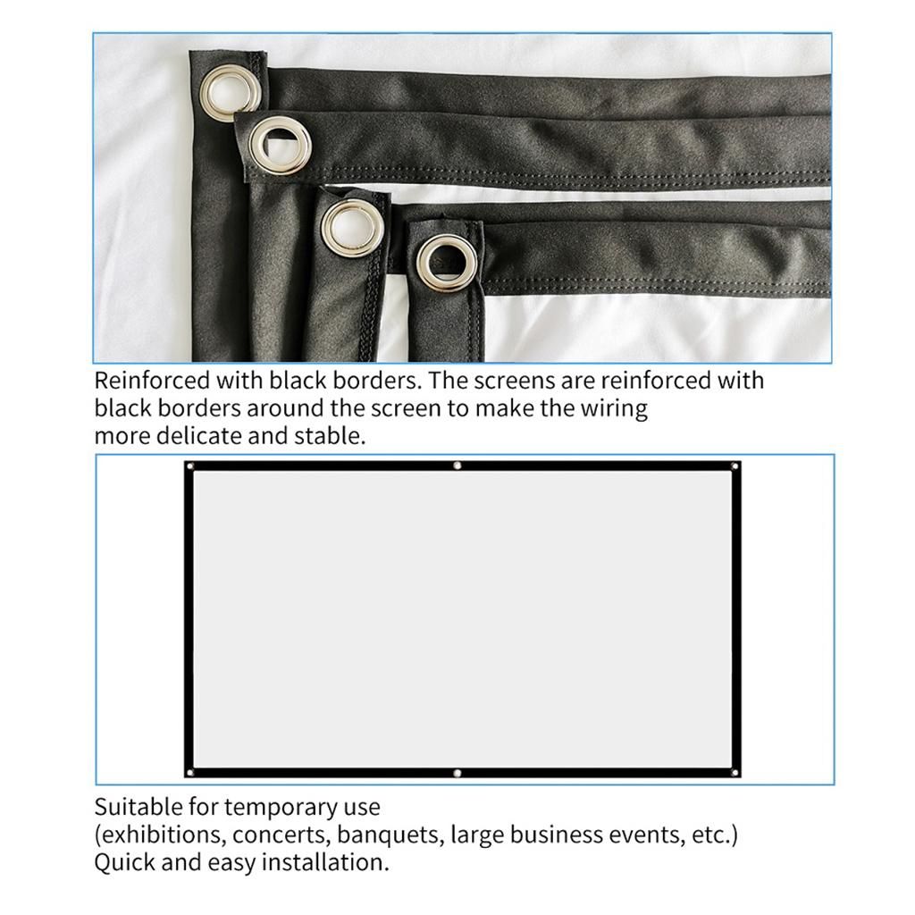 Foldable: The projection curtain is soft and can be folded, can be placed in a backpack or in a portable handbag that can be easily taken away.