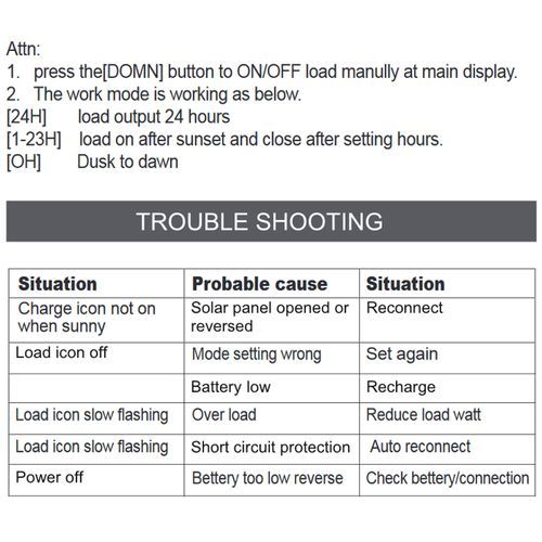 4. This controller can ONLY use photovoltaic panel as source, do NOT use DC or other supply as source.
