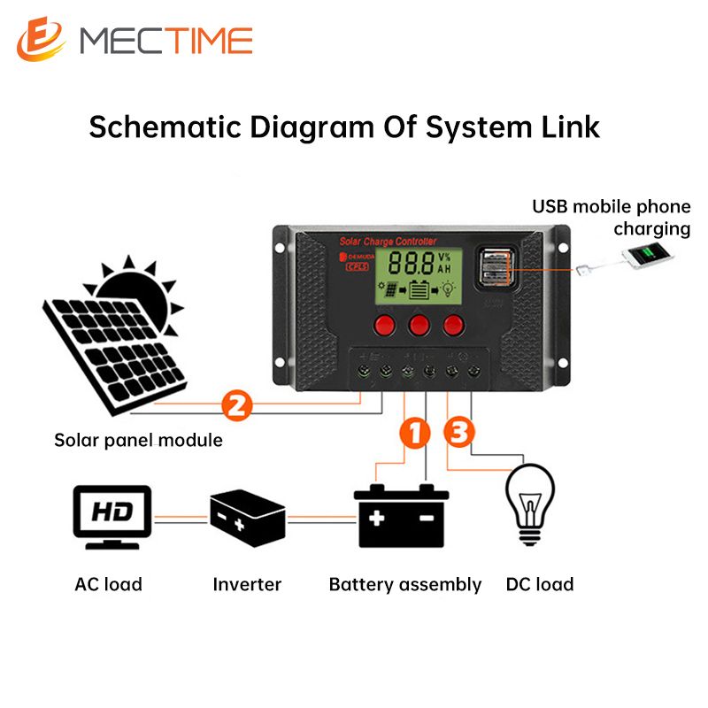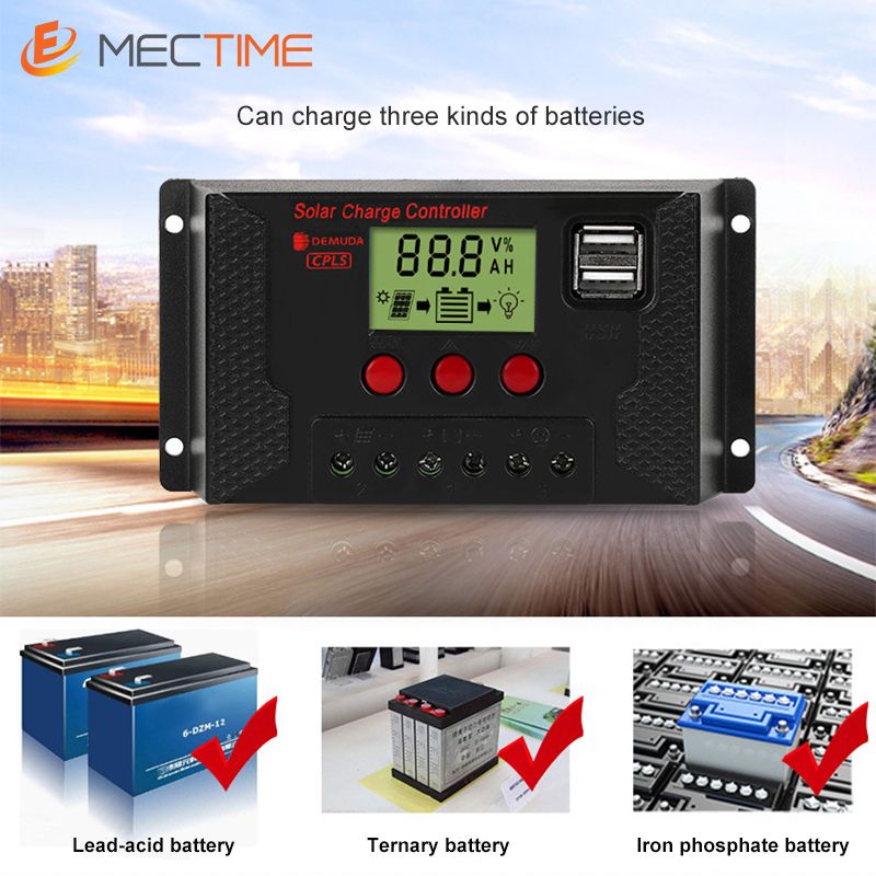 - The solar regulator is suitable for three kinds of batteries rechargeable Lead-acid batteries, Ternary batteries, and Iron phosphate batteries.