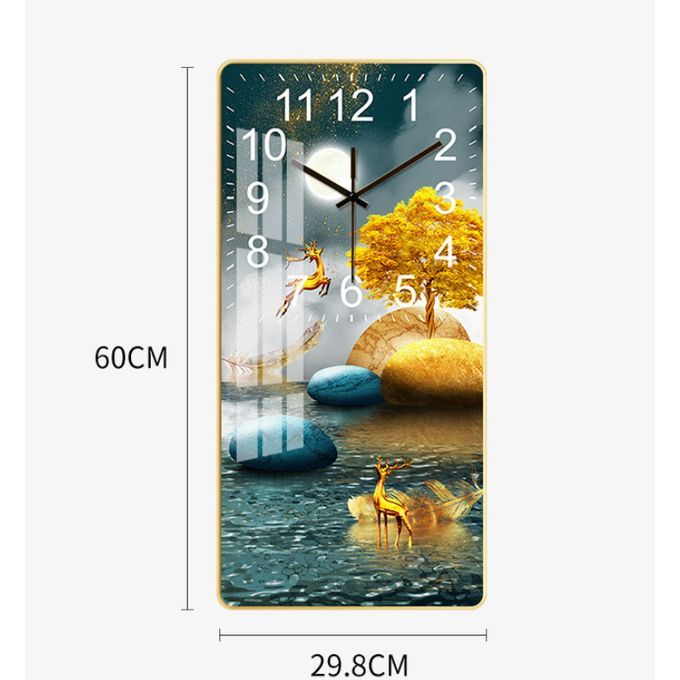 - This is a luxury portrait wall clock that is made with the best material in the market and is designed to give your living room, office, hotel etc an impeccable beauty that everyone will admire. Do not have any doubt in buying this clock because what you see is what you get. These are real pictures. The size of the clock is big enough to give a radiating beauty anywhere is mounted in your house. The size is 60CM height And 29.8 width which is amazing .