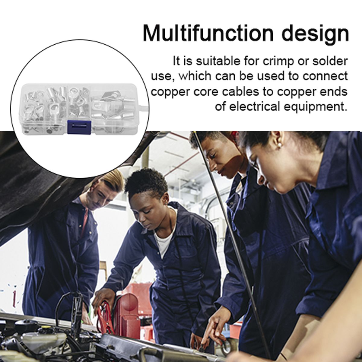 The terminals are made of quality copper material with high conductivity for maximum current. The electrolytic tinning guarantees corrosion resistance while minimizing the resistance of the electrical contact. The models of the terminals are clearly carved on the terminals. Comes with a plastics box, which has a partition designed for neat and tidy storage.
