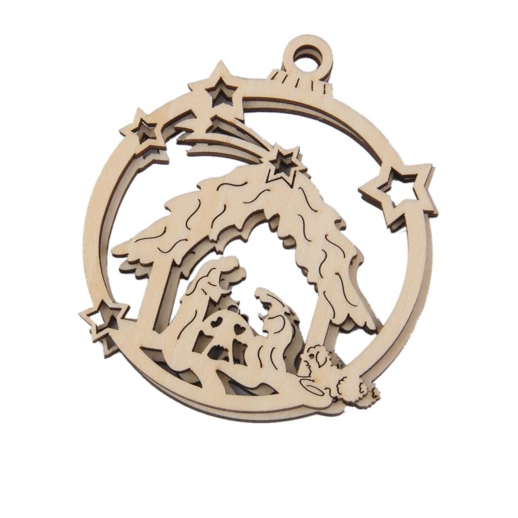 Cut round shapes with the birth of Jesus, cut from high quality wood.