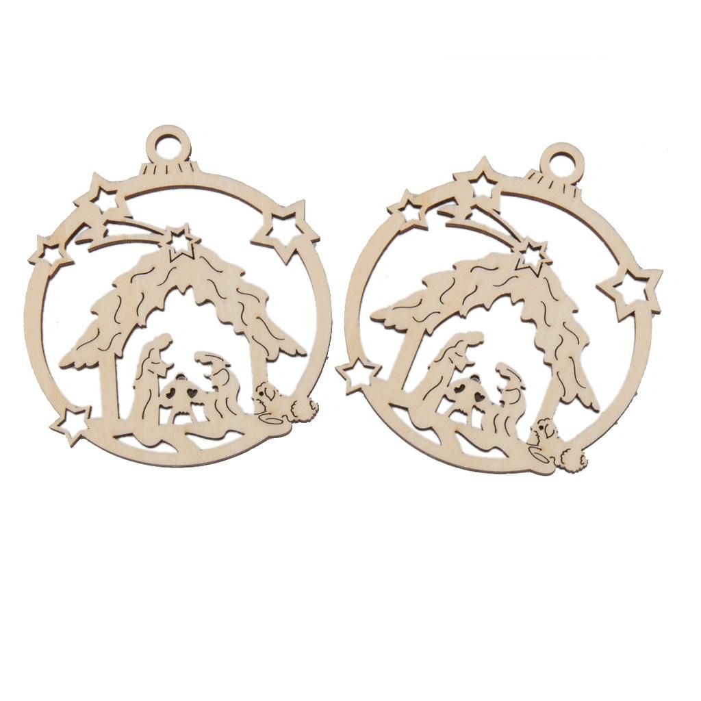 60pcs the Birth of Jesus Laser Cut Out Wooden Tag with String