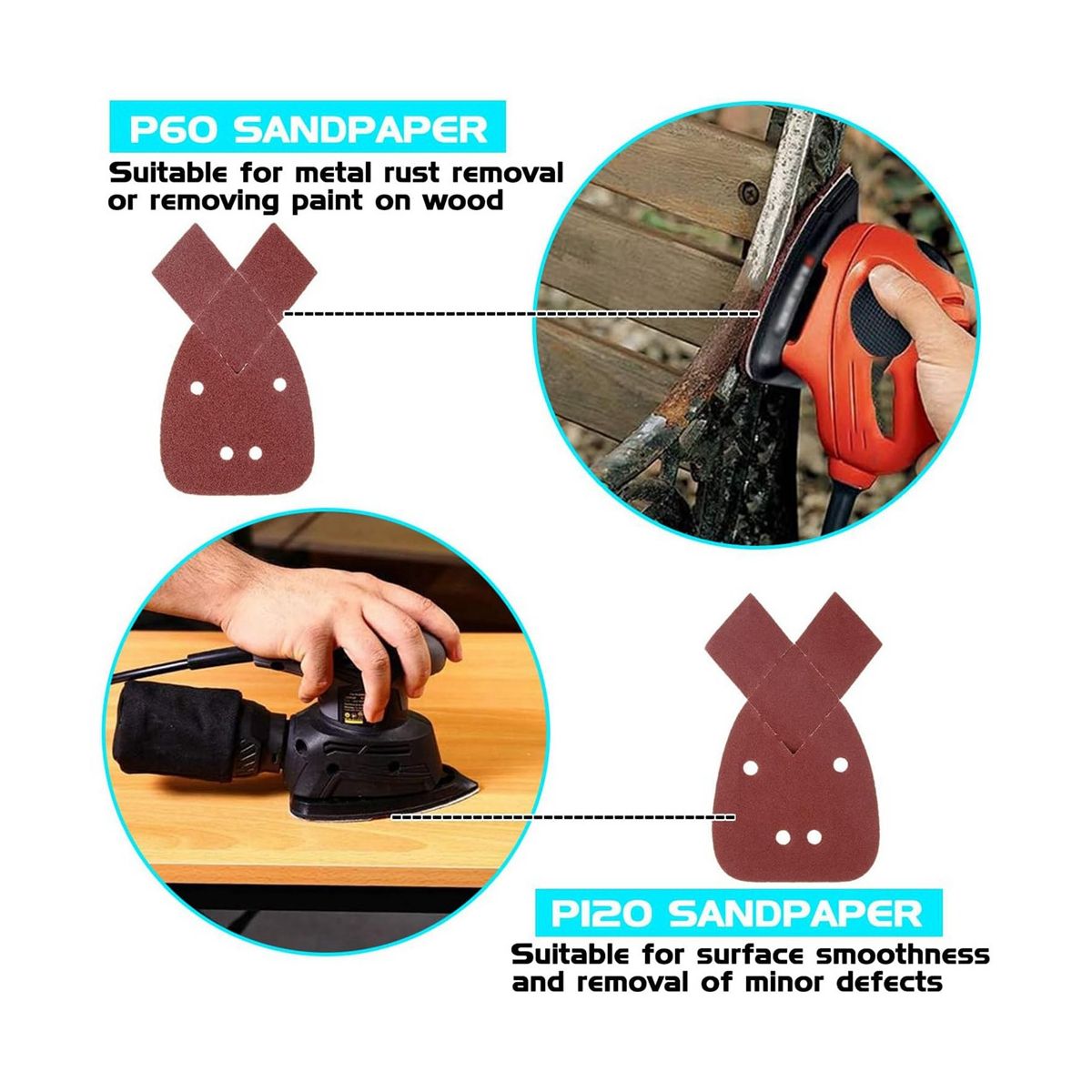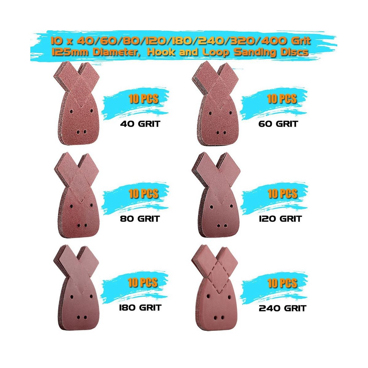 [PACKAGE INCLUDED]A total of 60 sheets of mouse detail sander sandpaper. The package includes 6 different grit grades of sandpaper: 10 x 40/60/80/120/180/240 Grit. The grits grade are printed on the sandpaper back for easy identification.