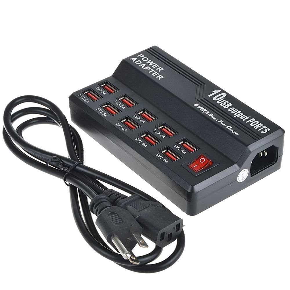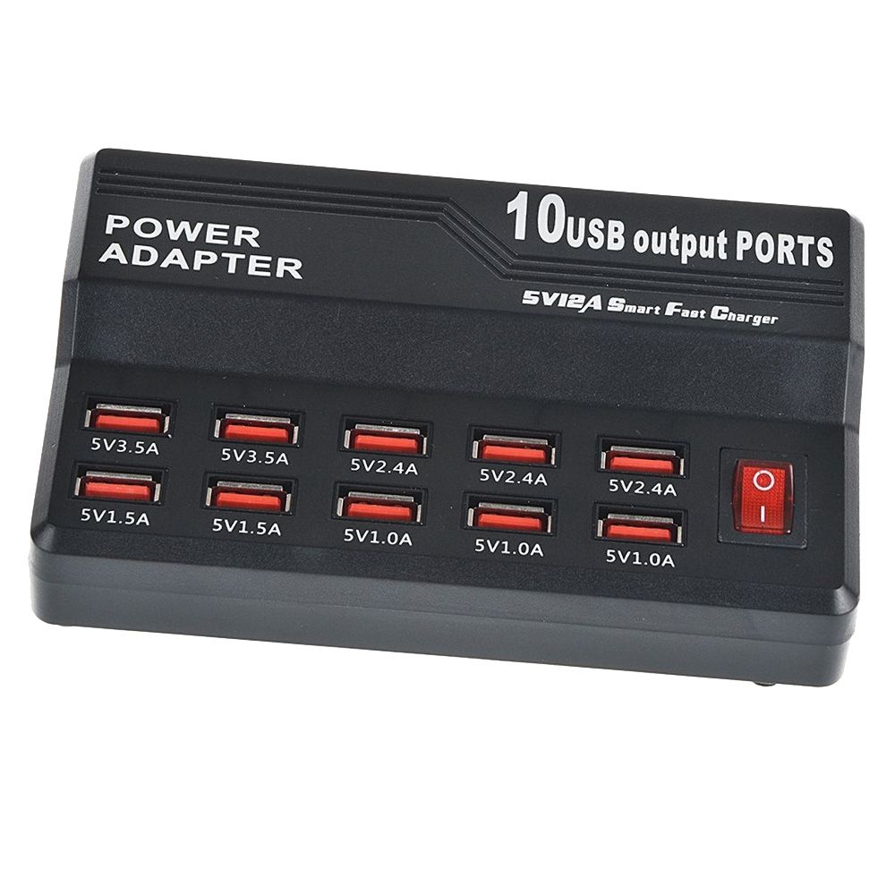 60W 10 Ports USB Fast Charging Dock Desktop Smart Charger AC100-240V, US Plug (Black)