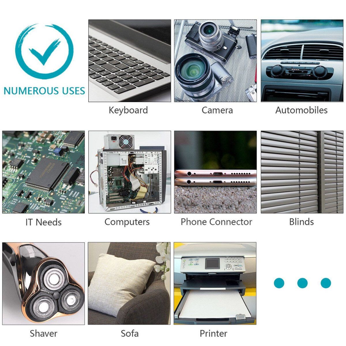 1 x Cordless Air Duster 1 x Long Hair Brush 1 x Long Blowing Mouth 1 x USB Charging Cable