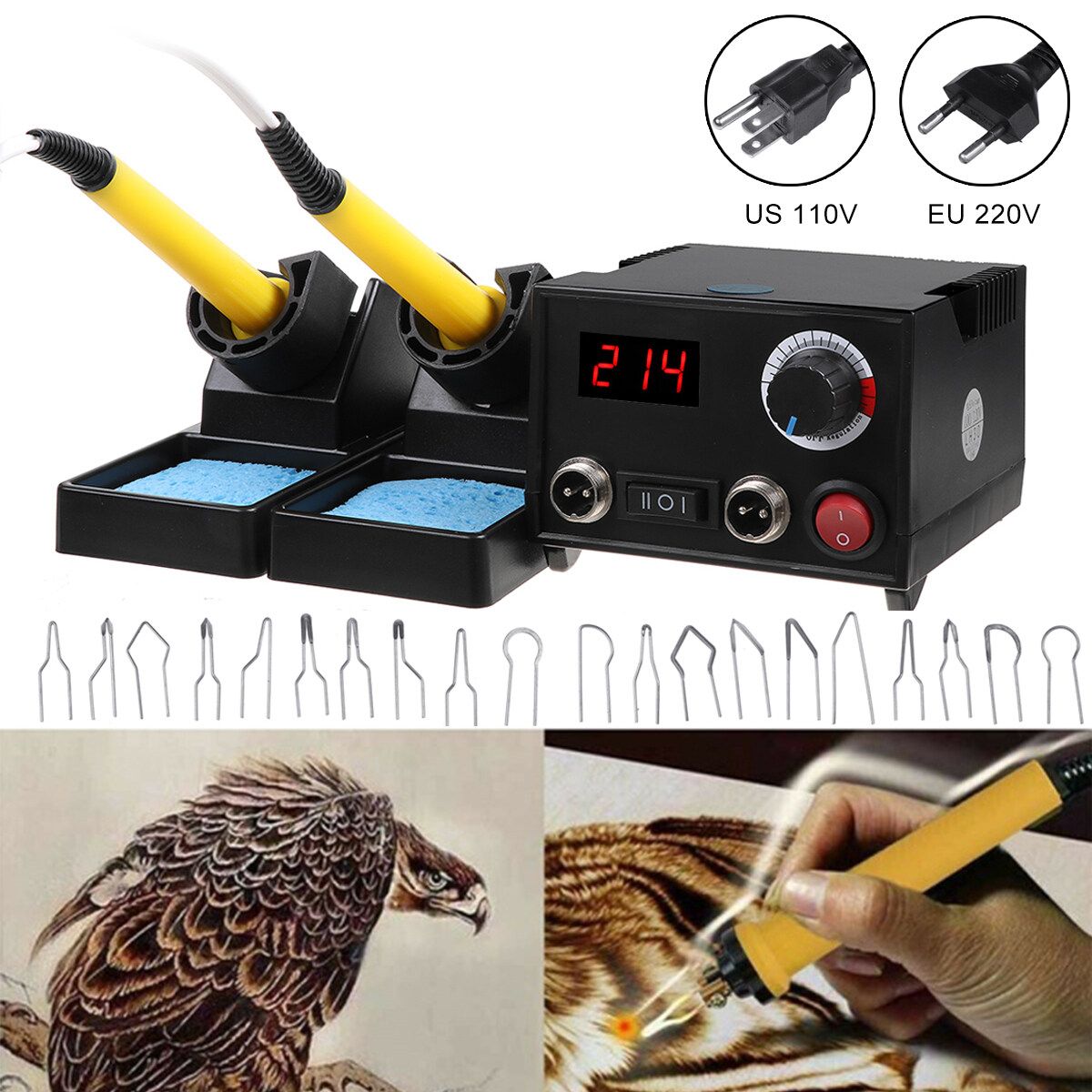 1 x Pyrography Machine 2 x Pyrography Pen 2 x Pen Holder 1 x Screwsdriver 20 x Wire Tips 2 x Cleaning Sponge
