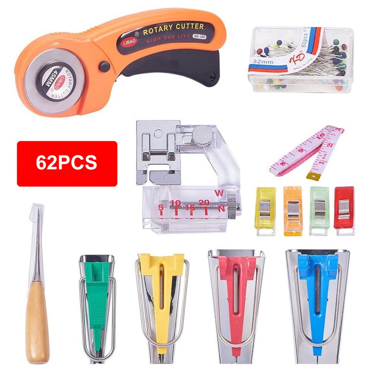 [Save Time]This convenient bias tape maker kit helps you fold the fabric into perfect halves automatically and can help you make bias tapes in minutes instead of hours.