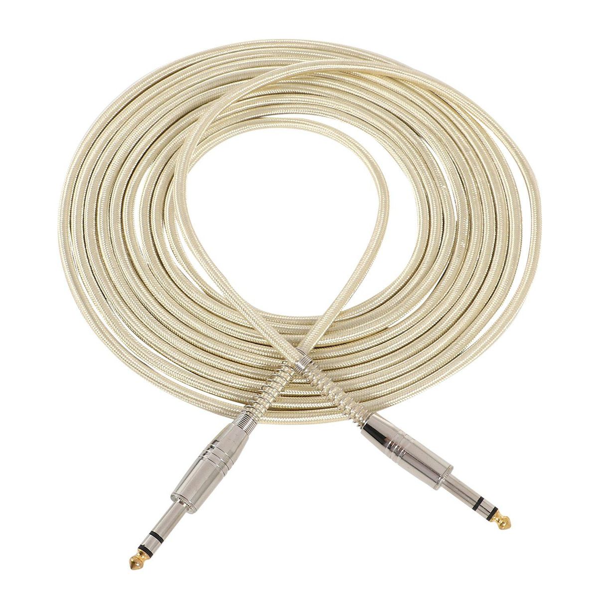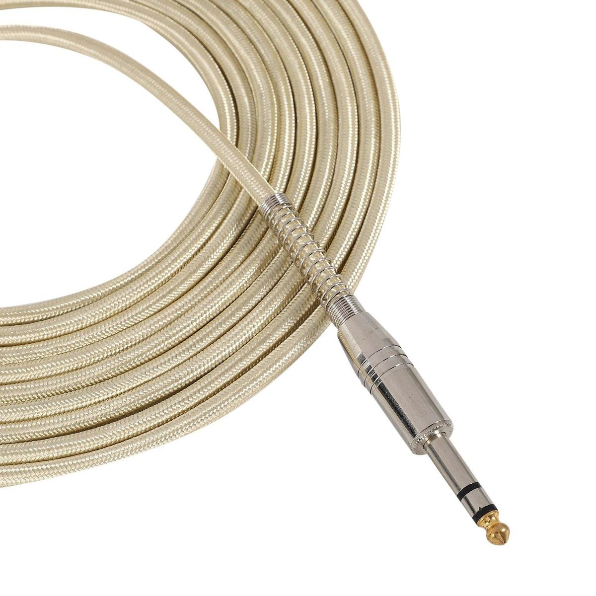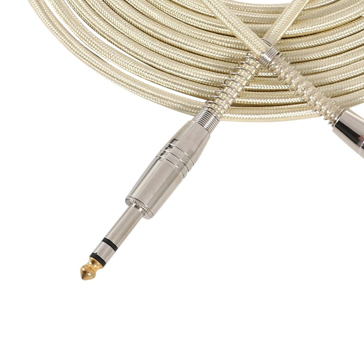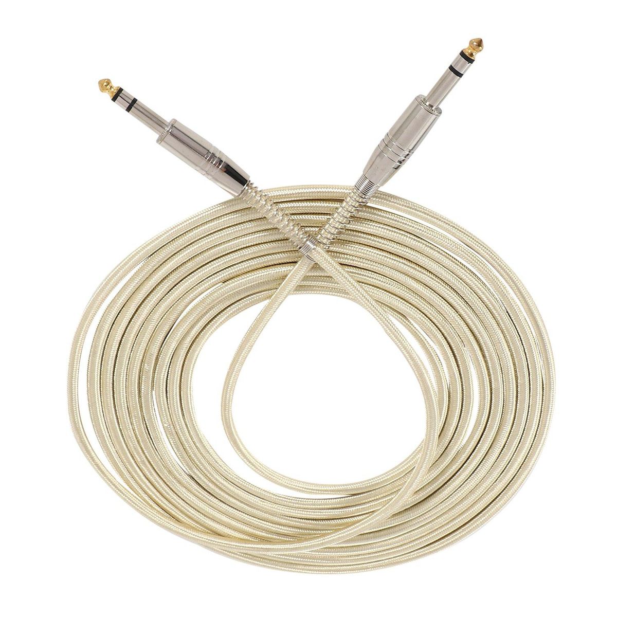 Gender:Male To Male Connector Type:Stereo Audio Cable Product Model:audio cable Item Type:audio cable extension Function:audio cable 6.35mm Feature 2:cables For:Electric Guitar Mixer Mono/Stereo High quality material provides the best conduction of signal. The coil design near the connector makes it anti-break. Cable is with a woven mesh, which is both and durable. External Network Material: Fiber net Length:5m colour:Gold Material:Plastic metal Package Contents: 1 * Male To Male Audio Cable