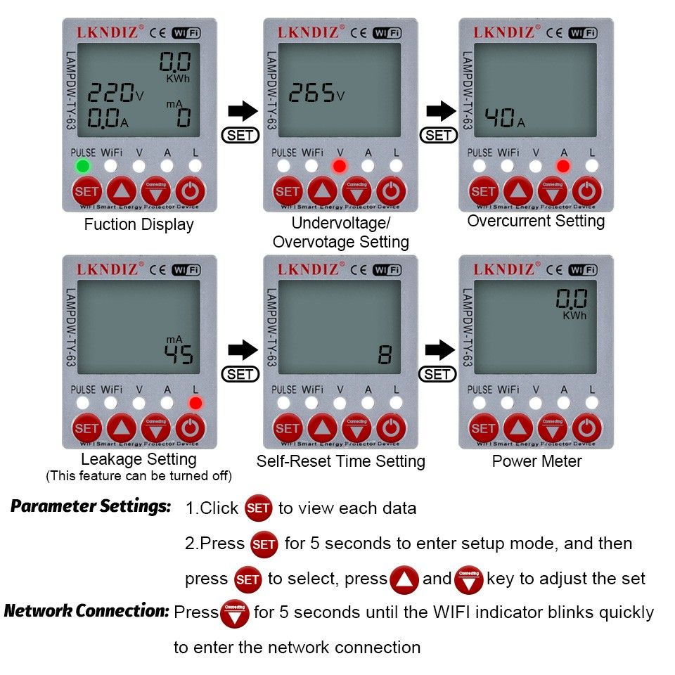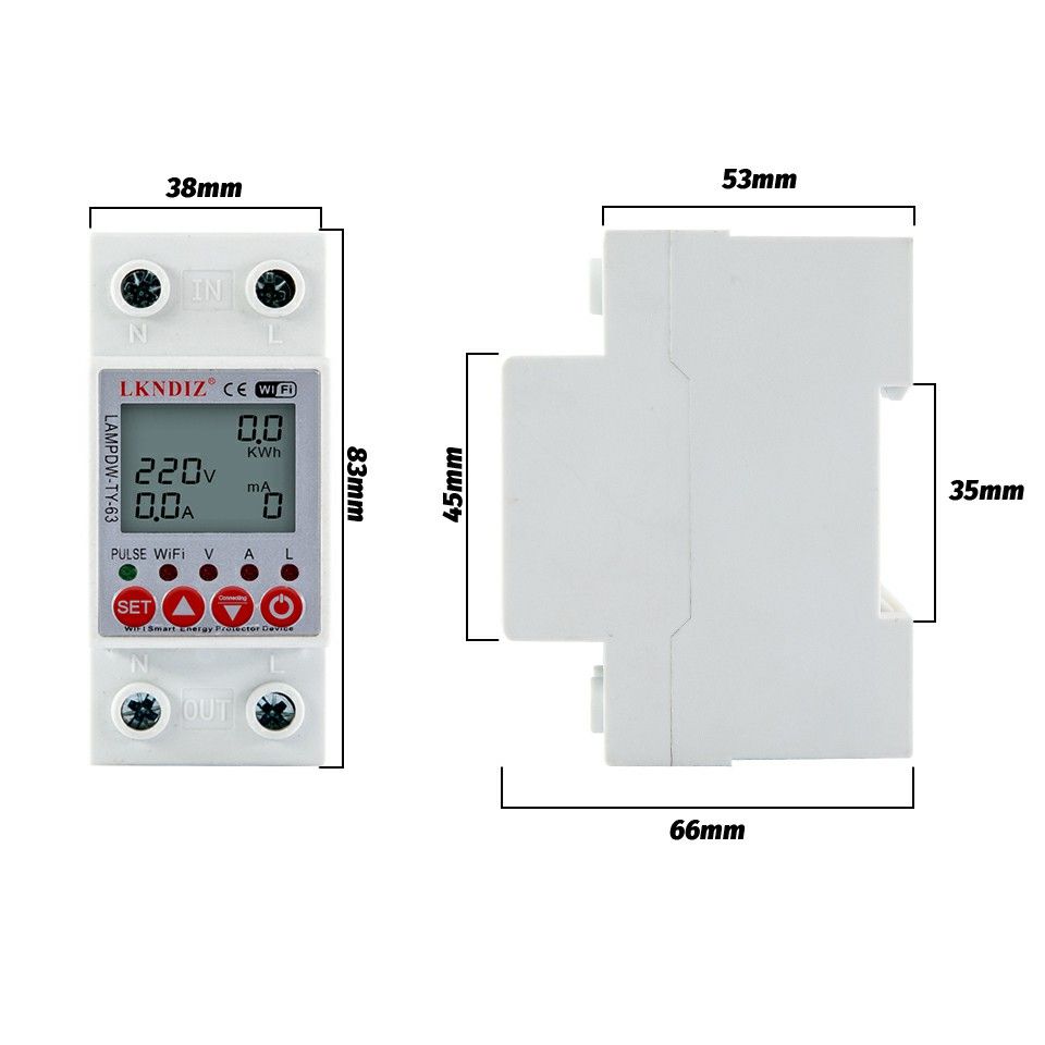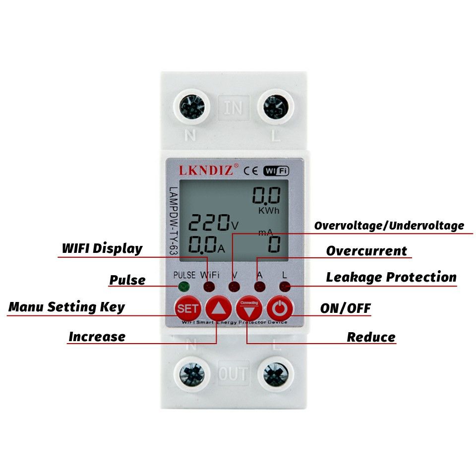 PS: This device has memory function, when the power cut off, the device can memory the Kwh, over voltage, under voltage and over current value.