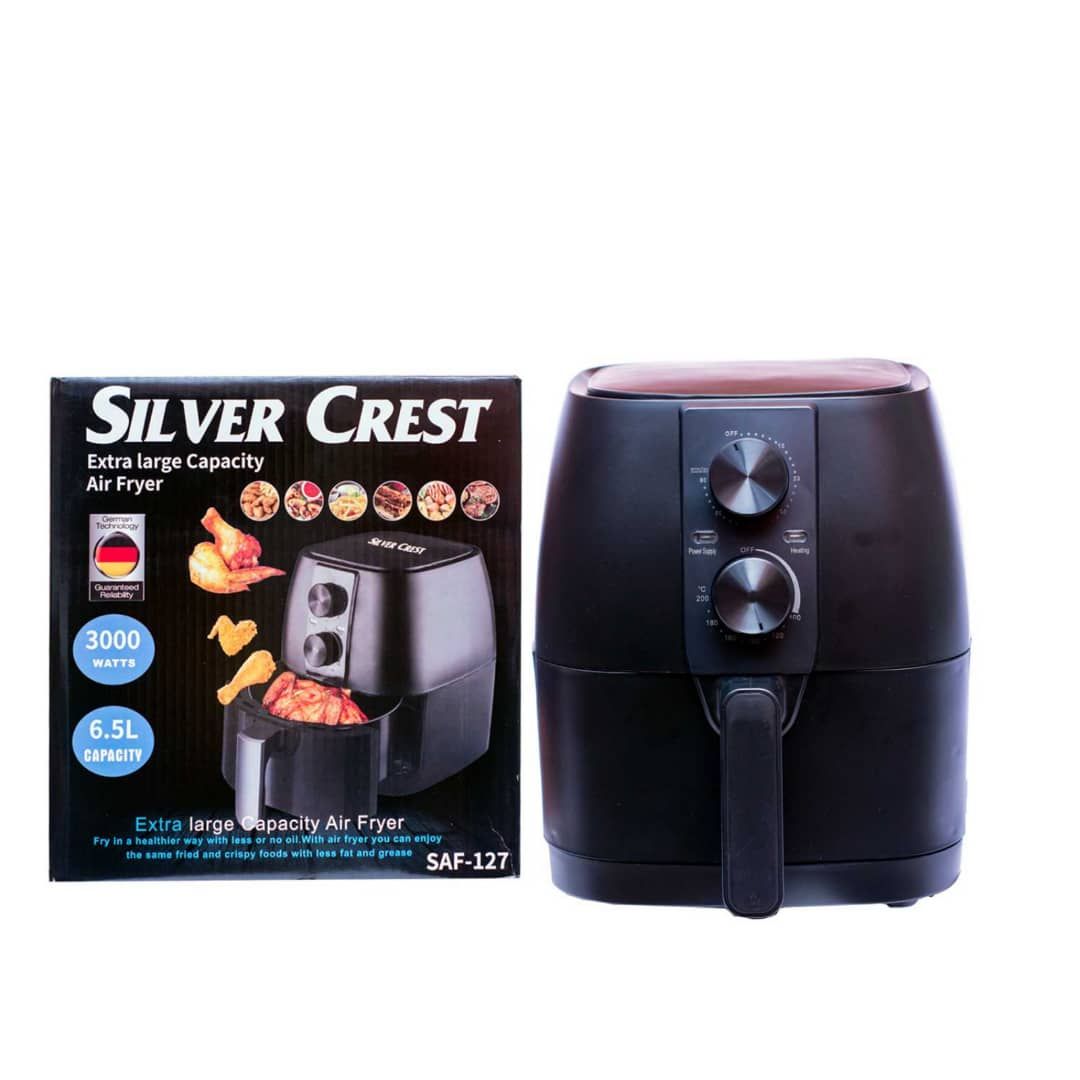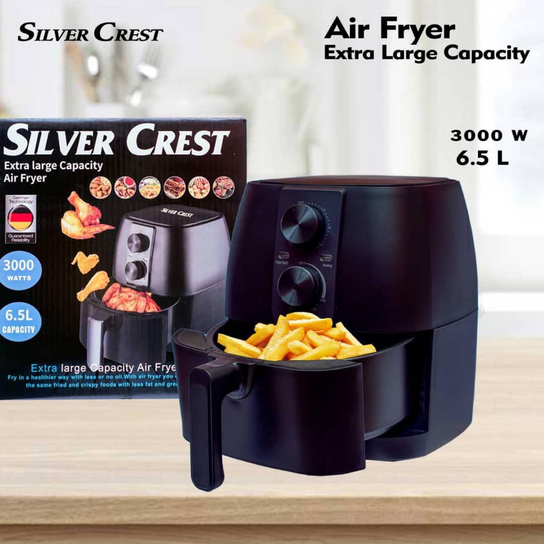 The Silver Crest 6.5L Air Fryer helps you reduce up to 80% of your fat intake enabling you to fry food without the need for oil. It features rapid air technology, adjustable temperature control, and a 30-minute timer that helps you pre-set your cooking time.