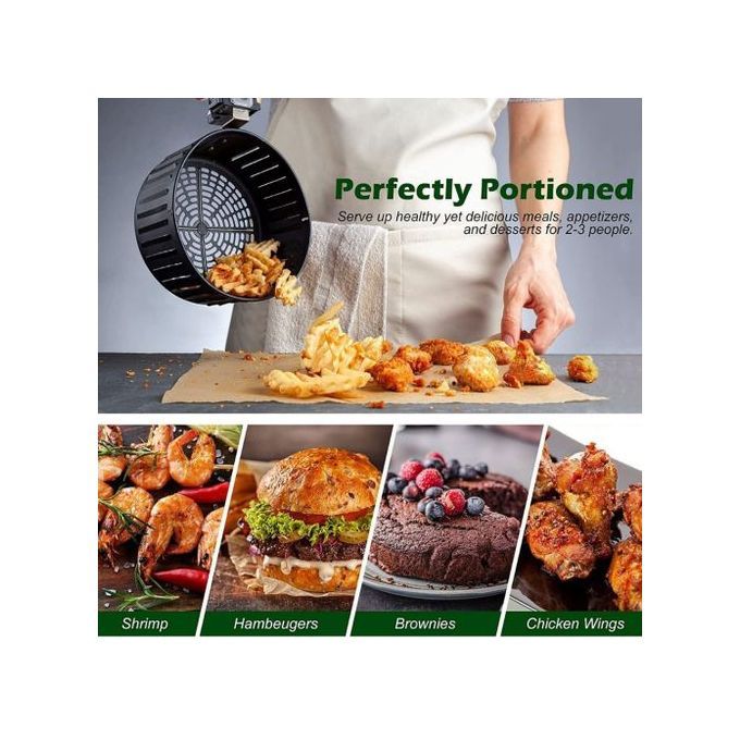 The Integrated air filter keeps your kitchen fresh and clean while parts of the air fryer are removable and dishwasher safe. Included is a recipe booklet to help you kick start your healthy cooking regime.
