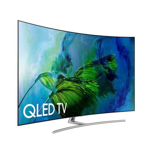 View content at four times the resolution of 1080p with the Samsung Q8C 65" Class HDR UHD Smart Curved QLED TV. This TV has a 64.5" LED-backlit curved LCD display, and incorporates Motion Rate 240 technology to digitally enhance fast-moving images to reduce blur.