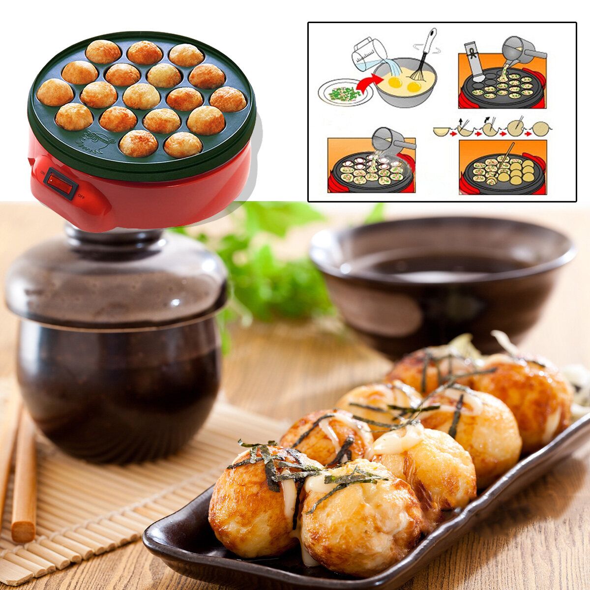 1. 18 holes takoyaki Grill Pan, you can make takoyaki octopus ball at home.