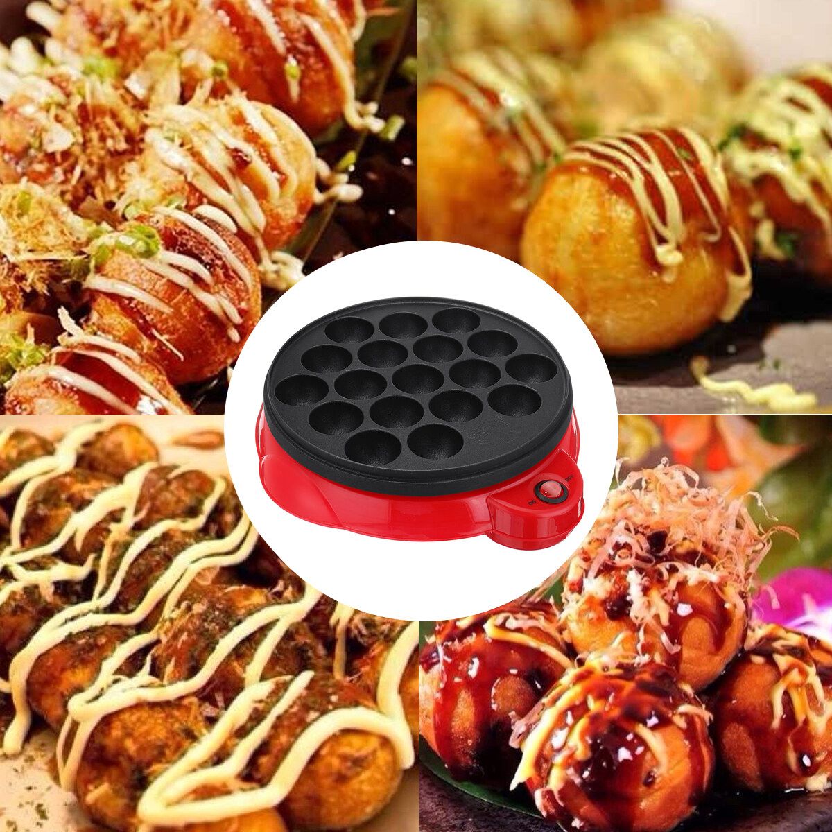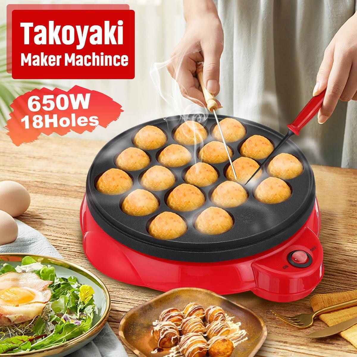 650W 18Holes Electric Takoyaki Maker Machince Snacks Grill Pan Baking Kitchen
