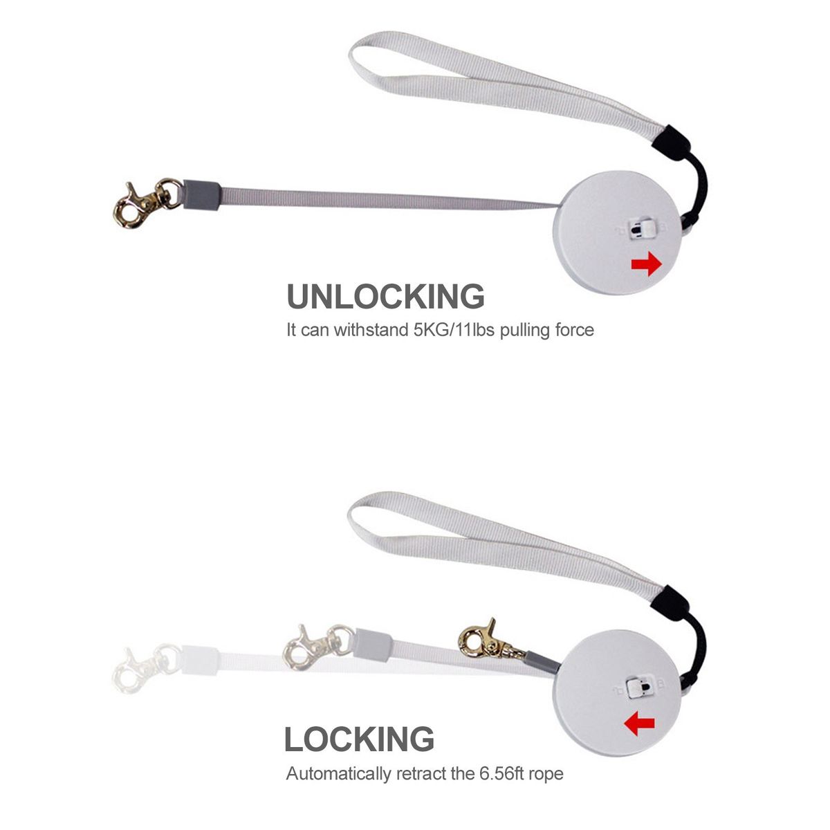 Retractable dog leash comes with a smart lock button to set the length of the leash needed, and an instant retractable button to pull the dog back when needed, such as in emergencies. It gives you full control to ensure the safety of your dog and the public.