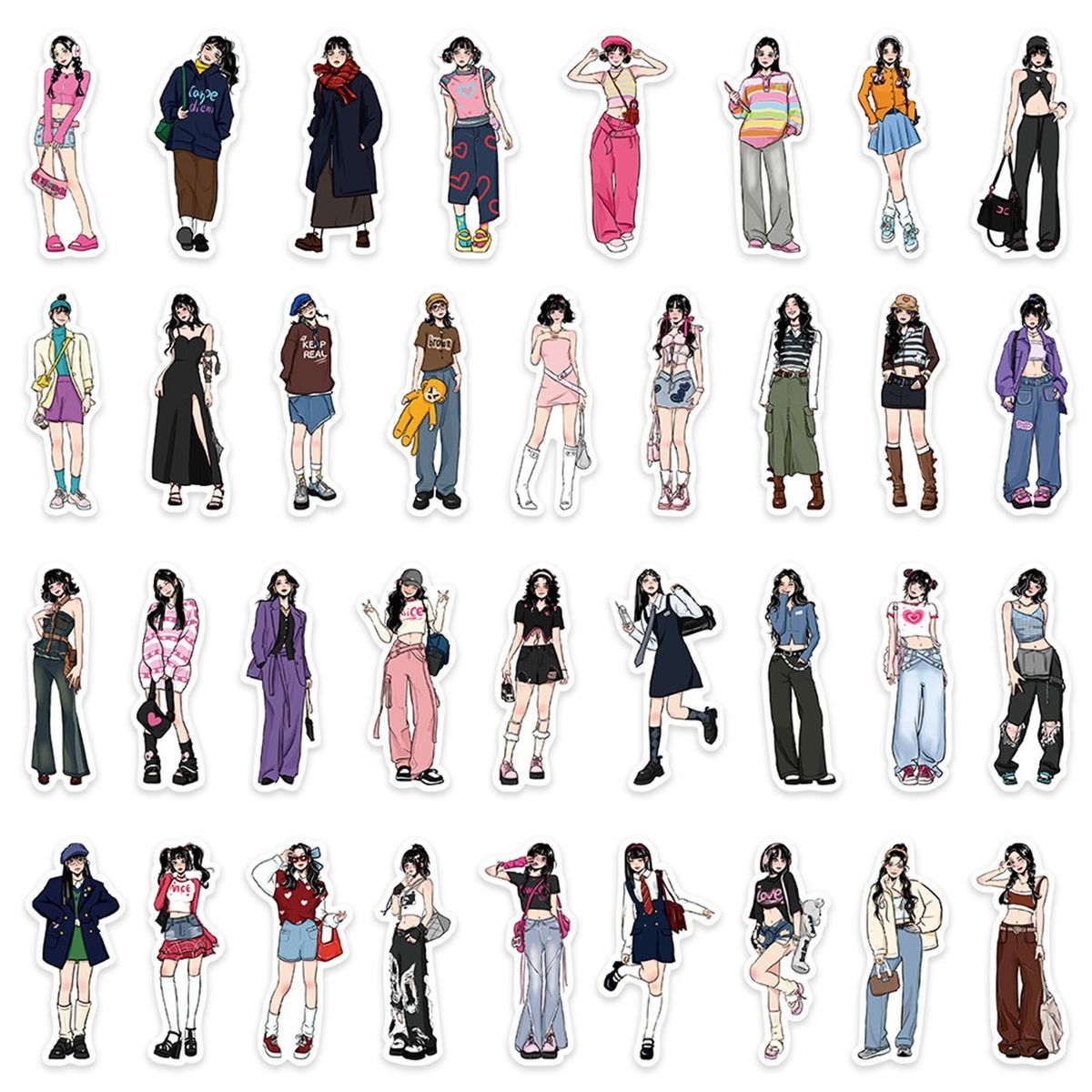 Package Includes:1 Set of Cartoon Girl Stickers (65Pcs Stickers Included)