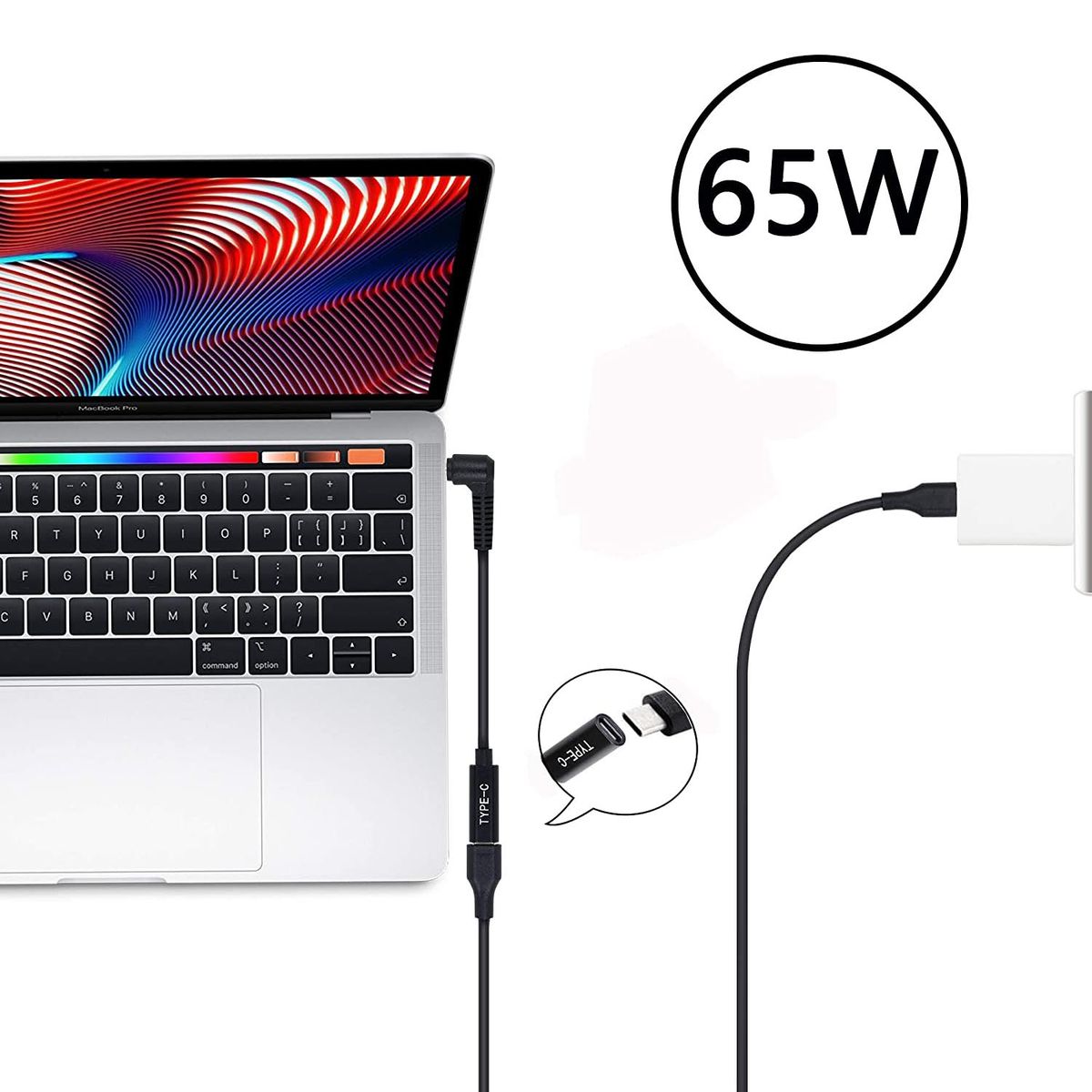 1.This PD Adapter must a PD (USB-C Male) 65w or le power wall outlet adapter.Power shortage will ca charging failure.