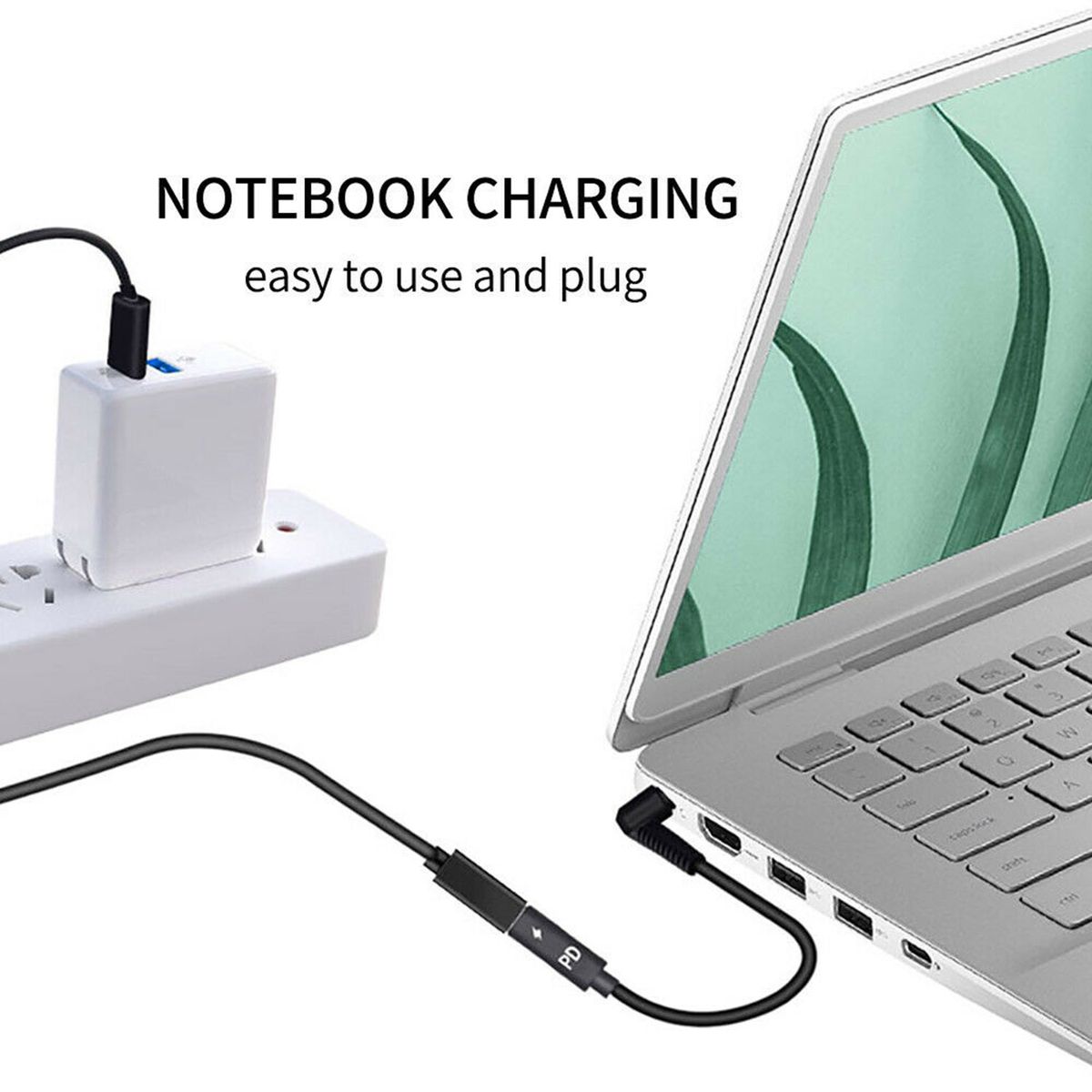 Designed to charge notebooks for Notebooks with DC 4.0 x 1.7mm port. Using a 65W PD wall charger outlet with USB-C port.