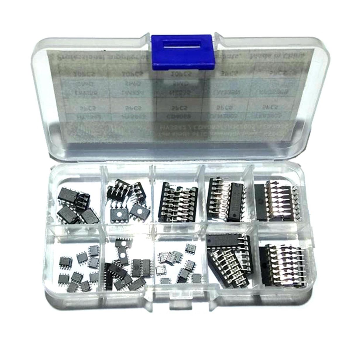 65pcs 10 Values: 5pcs HY3842,5pcs HY3843,5pcs CD4069,5pcs ULN2003,5pcs TEA2025,5pcs KA7500B,5pcs LM339N,10pcs LM358 SMD,10pcs LM324 SMD,10pcs NE555 SMD.All in : Inlcuding almost all of useful IC types for daily assembly like precision timers, dual operational , audio , arrays, quad operational , etc.Light Weight: small size, light weight, small solder joints, long life, high reliability, and good performance.DIY : use them for work & household circuit assembly. They are well made & durableApplicable to: electronic enthusiasts, students, electrical maintenance personnel, electronic engineers, doing experiments, maintenance, and making electronic products Suitable for circuit assembly of various electronic products, digital audio products, power , clocks, doorbells, power supplies, control circuits, etc.