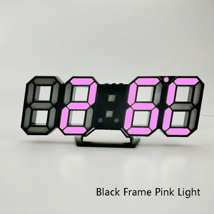 6609 Living Room 3D Wall Clock, Colour: Black Frame Pink Lig