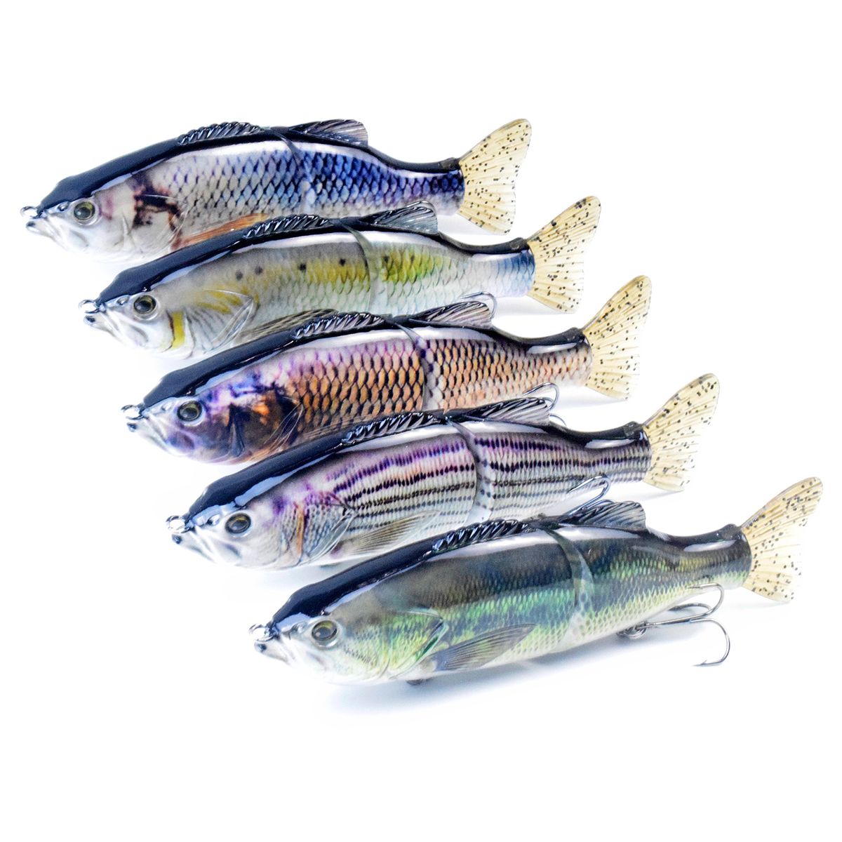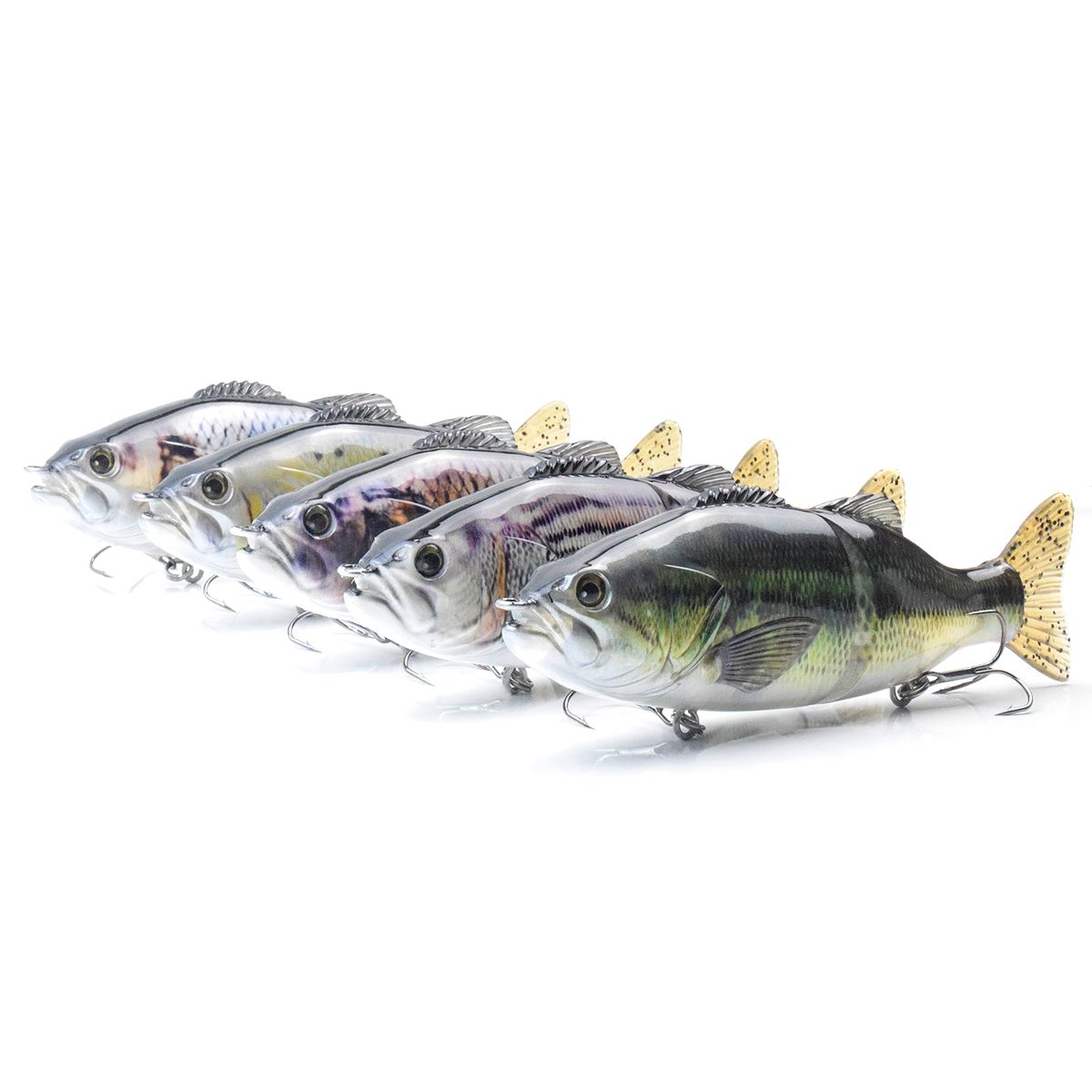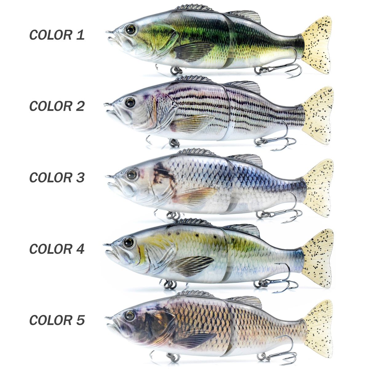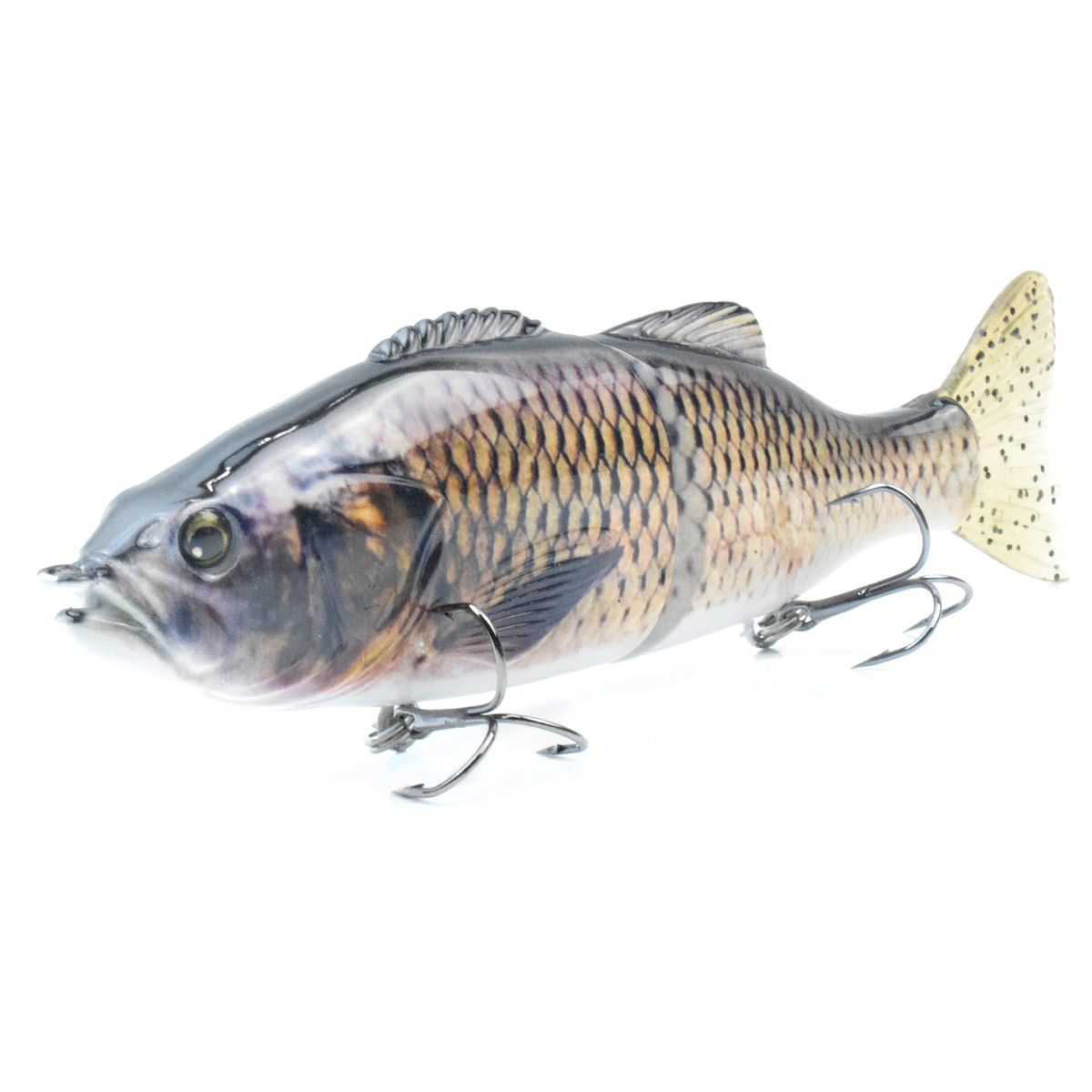 Durable carbon steel link joint delivers a natural swimming action to attract predators\' attention.