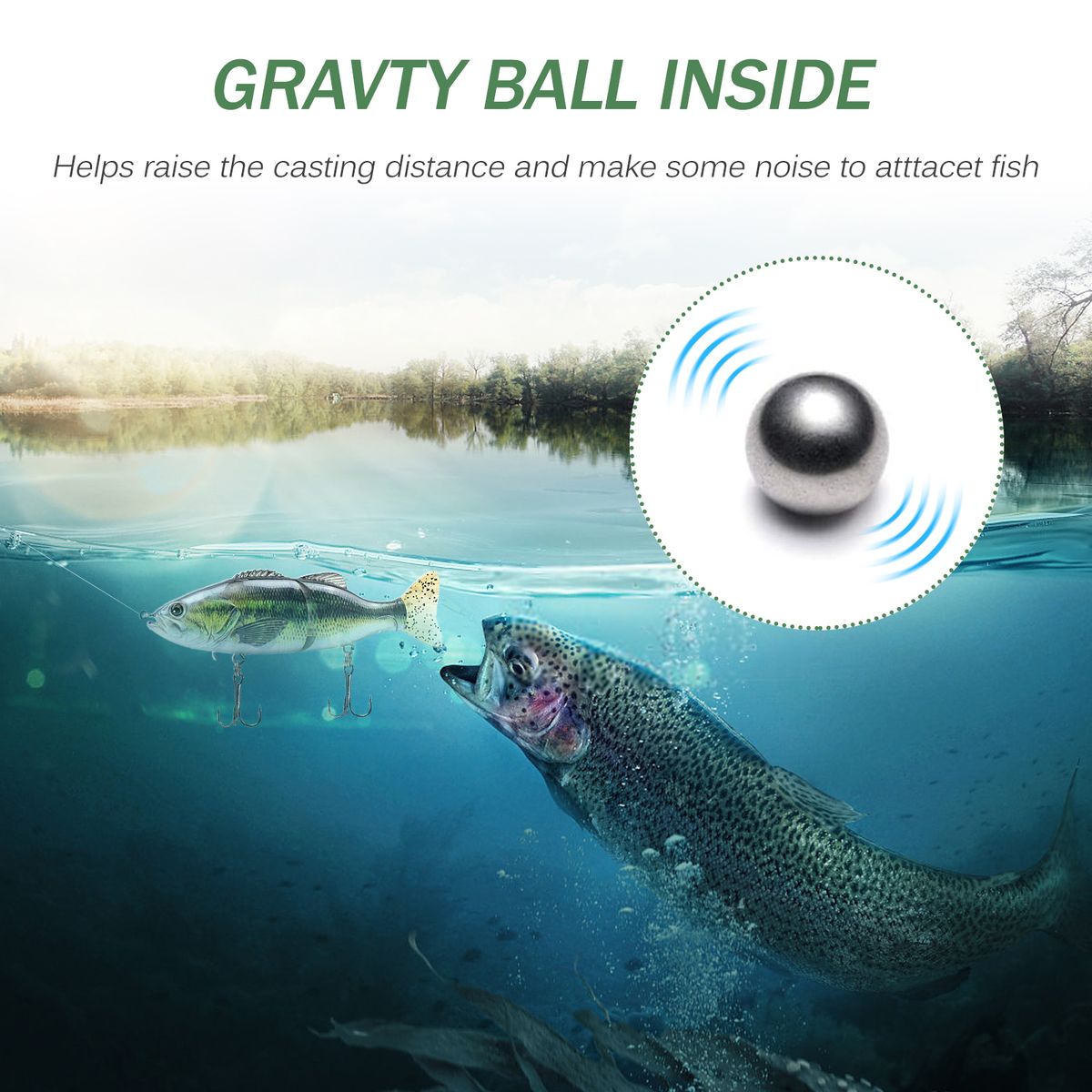 With steel ball inside, keep the bait in balance and attract other fishes.