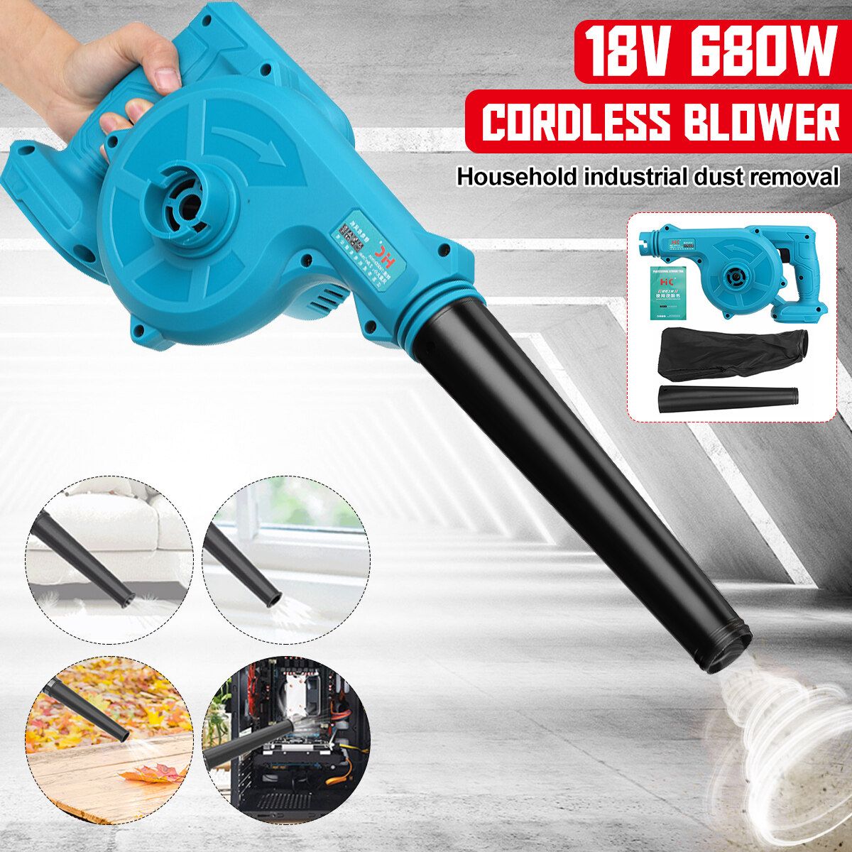 Package Includes : 1 * Blower 1 * Bag 1 * Blowpipe 1 * Manual