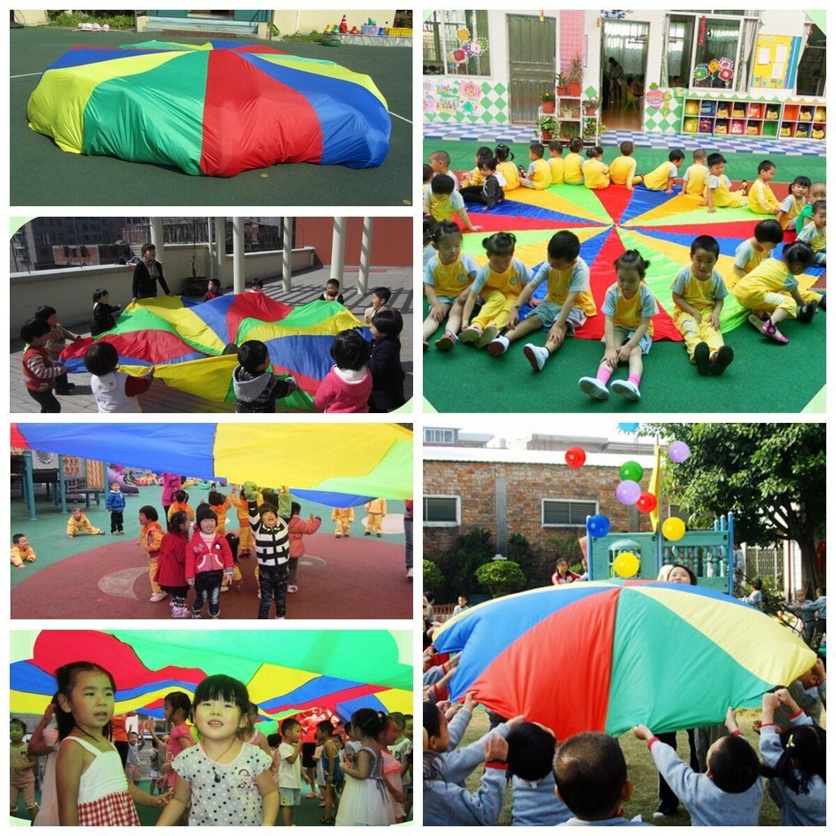 Havingfunischildsnature,thisrainbowumbrellaisbasedonthechild curiousplayfulnaturedesignedsothatchildrengrowuphappy, canstimulatechildrensimaginationability,motivationfromvisual,tactile,auditory, sportsandgamesthechildsinterest,triggertheirtalents,buildtheirchildsfantasyworld. Features: 1sturdyunbreakable 2brightcolorstoattractchildrensattention,letthechildrenquicklyintothecollectiveactivities 3exquisitetailoring,eachinterfacefirmlysewntogether Specifications: : multicolor Size:1.8m,suitablefor4-8individuals Material:Nylon Game: ●pullingcircleaway ●everyone hand ● throwup thetoy Youcangivefullplaytotheimagination,toplayanythingyouwanttoplaythegame Userenderingsforreferenceonly, when the product openbecome a circle, its diameter is 1.8m, is made up of 6triangularcolorblocks,pleaseseedetails before you buy the good. Packageinclude: 1xrainbowumbrella