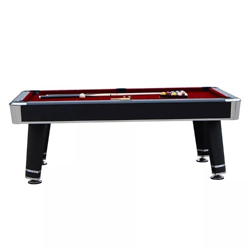 Get sporty with this 7 foot snooker pool table. It is well designed and comes with accessories, such as cue sticks, balls, chalk, triangle, brush. It comes with a green felt and black body.