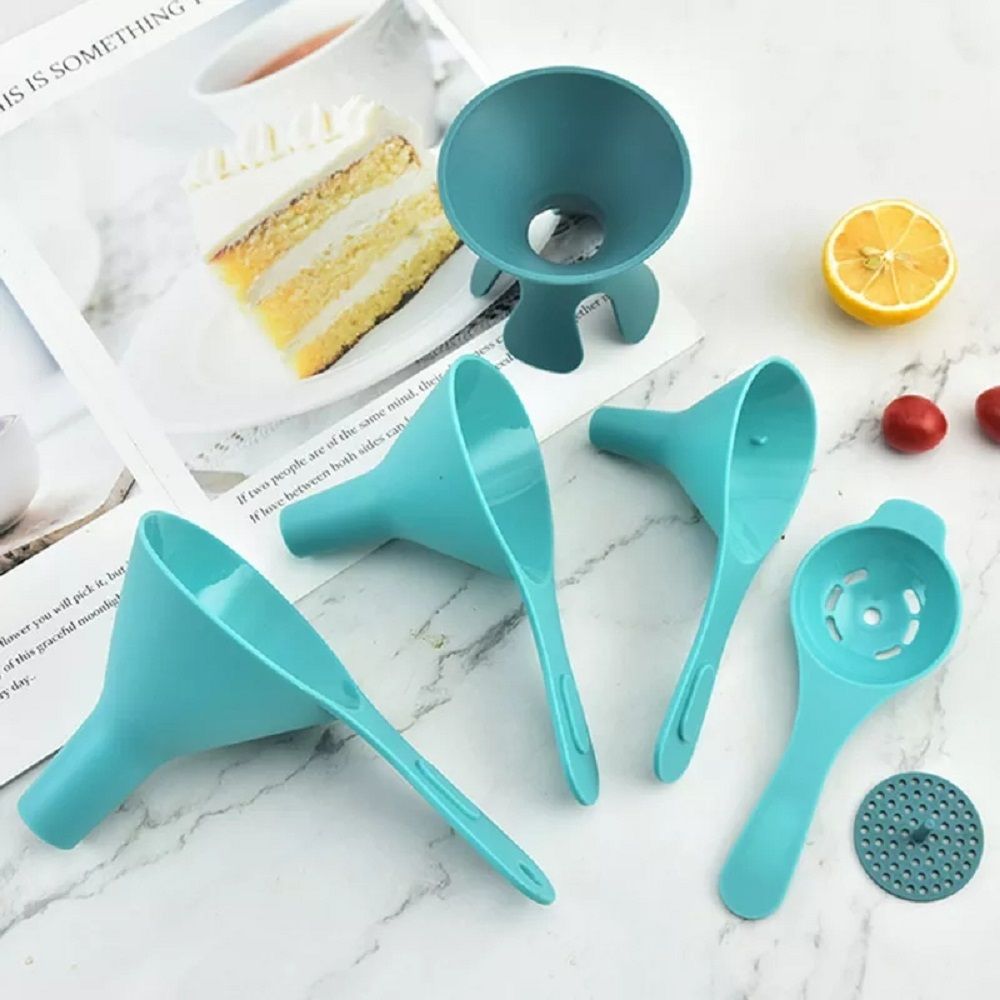 Household Multi-function 6-in-1 Funnels Set Oil Water Spices Wine Filtration and Sub-packaging PP Funnel Portable Kitchen Tools