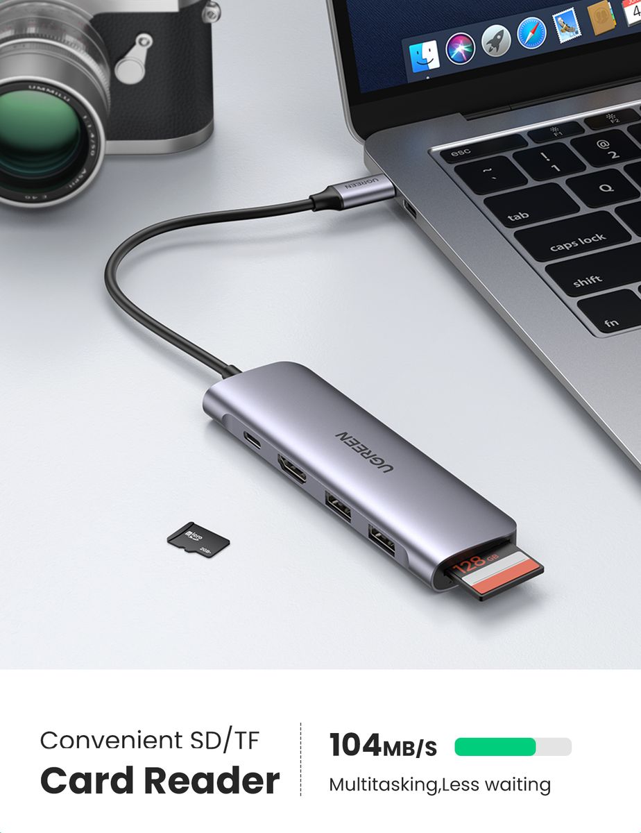 - UGREEN USB C hub adapter supports fast data reading and writing for SD/TF card up to 2TB.