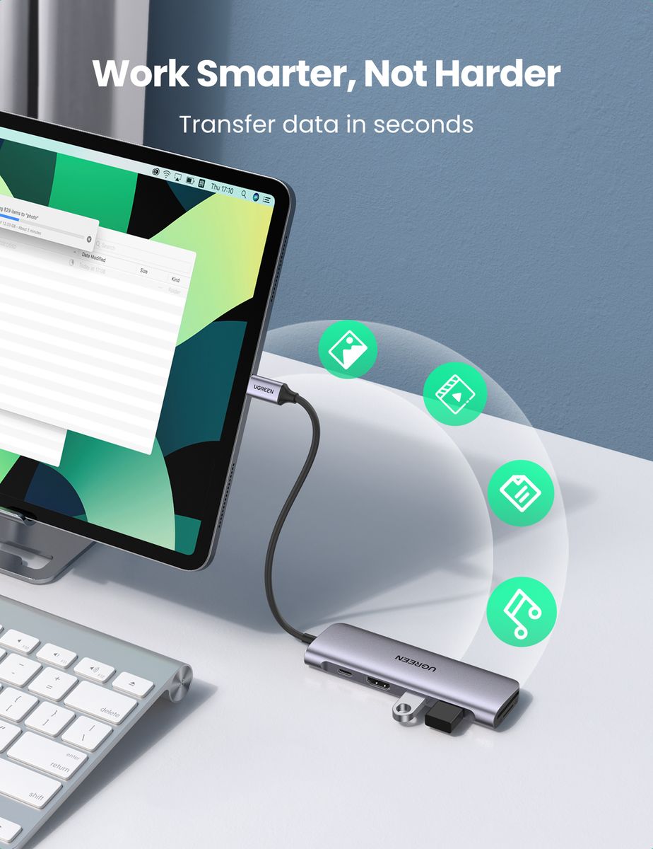 Compact Size & Mac-style: Compact and lightweight, allows you to expand your laptops' capabilities while on-the-go. UGREEN USB-C hub with sleek aluminium finish perfectly Macbook. The aluminium case is better for heat dissipation, electronic component and circuitry will be conducted to outside more quickly, making this USB C adapter safer to use.