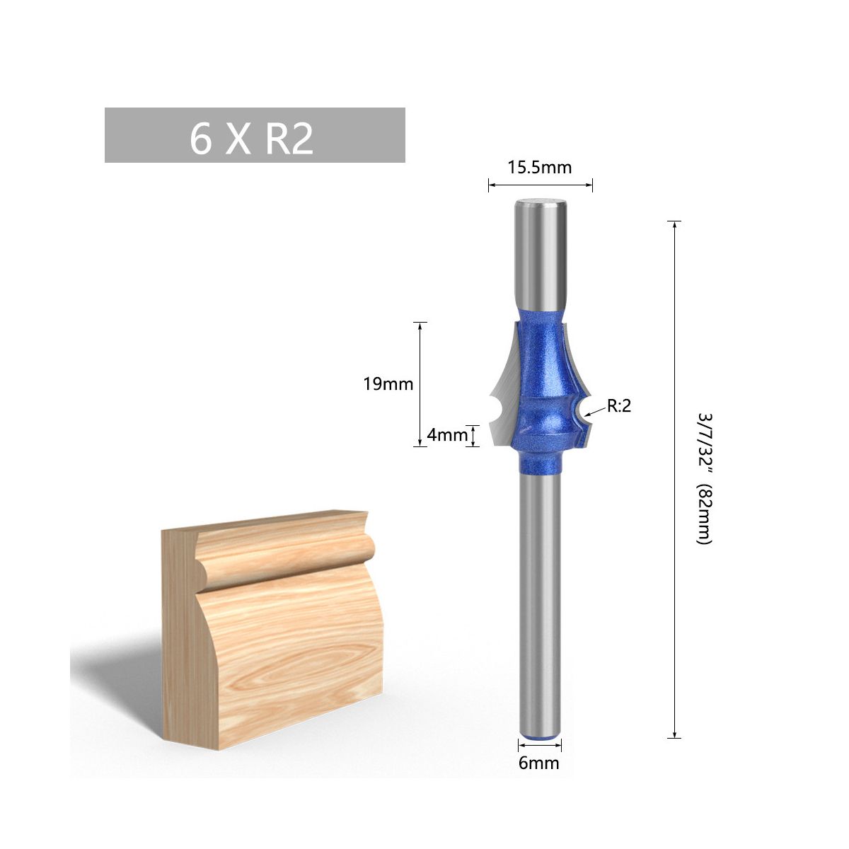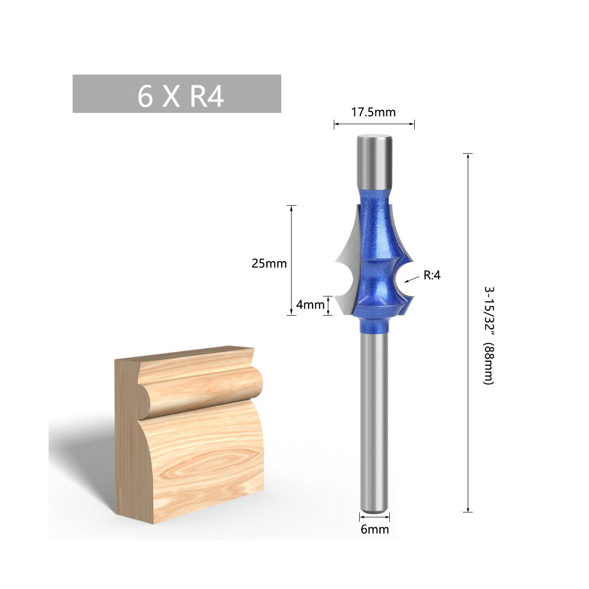Woodworking milling handle parts are: 3mm, 6mm, 1/4 inch(6.35mm), 8mm, 12mm, 1/2 inch(12.7mm)