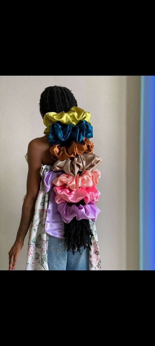 6 pieces of solid satin scrunches,wrapping elastic durable rubber band, assorted color