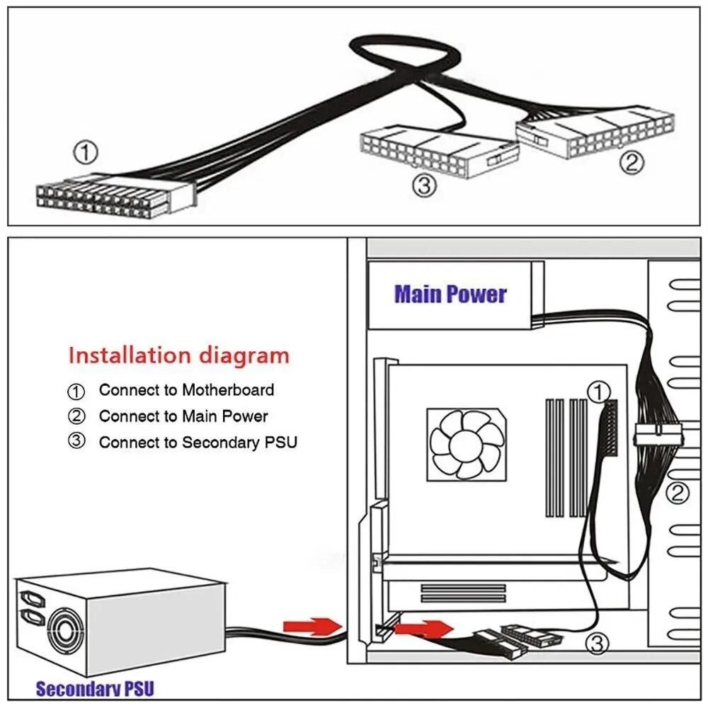 Buy 6PC ATX 30cm 24 Pin Dual PSU Power Supply Extension Cable Synchronous Cord For Computer Cable Connector For Mining 24Pin 20+4pin in Nigeria