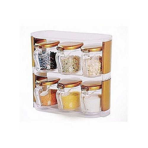 - 6 Pcs Six Seasoning Boxes Six spoons One Rack Stand Comes with cover to prevent spilling Season box is transparent Material: Non-toxic Plastic Each container.Its an air tight container for storing seasonings or sipces.. Its makes your kitchen organized and arranged.. Helps you to have easy access to your seasonings anytime you need them
