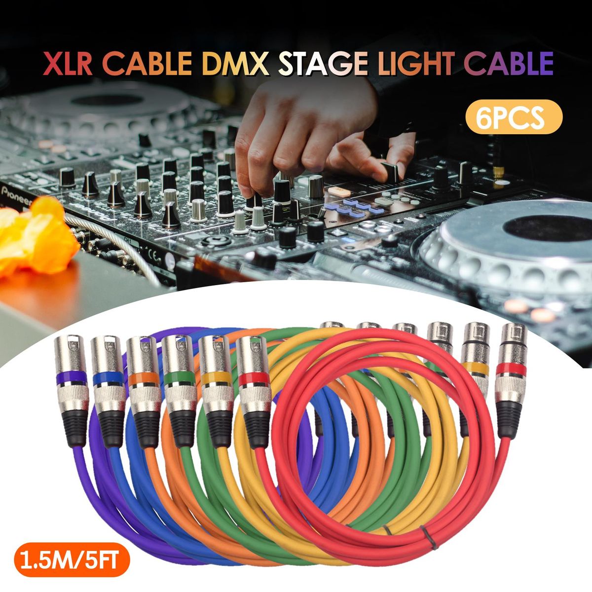 Buy 6pcs 1.5M/5ft XLR Cable DMX Stage Light Cable 3-Pin XLR Male to Female Plug Black PVC Jack for Moving Head Light Spotlight Par Light Microphone Mixer in Nigeria