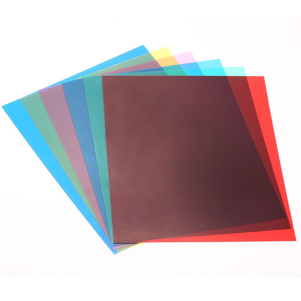 6pcs 25x20cm gel filters in different colors: red, blue green, cyan, yellow and magenta.
