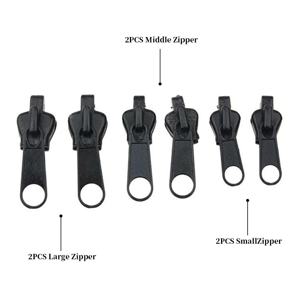 6Pcs 3 Sizes Universal Instant Fix Zipper Repair Kit Replacement Zip Slider Teeth Rescue New Design Zippers Sewing Clothes