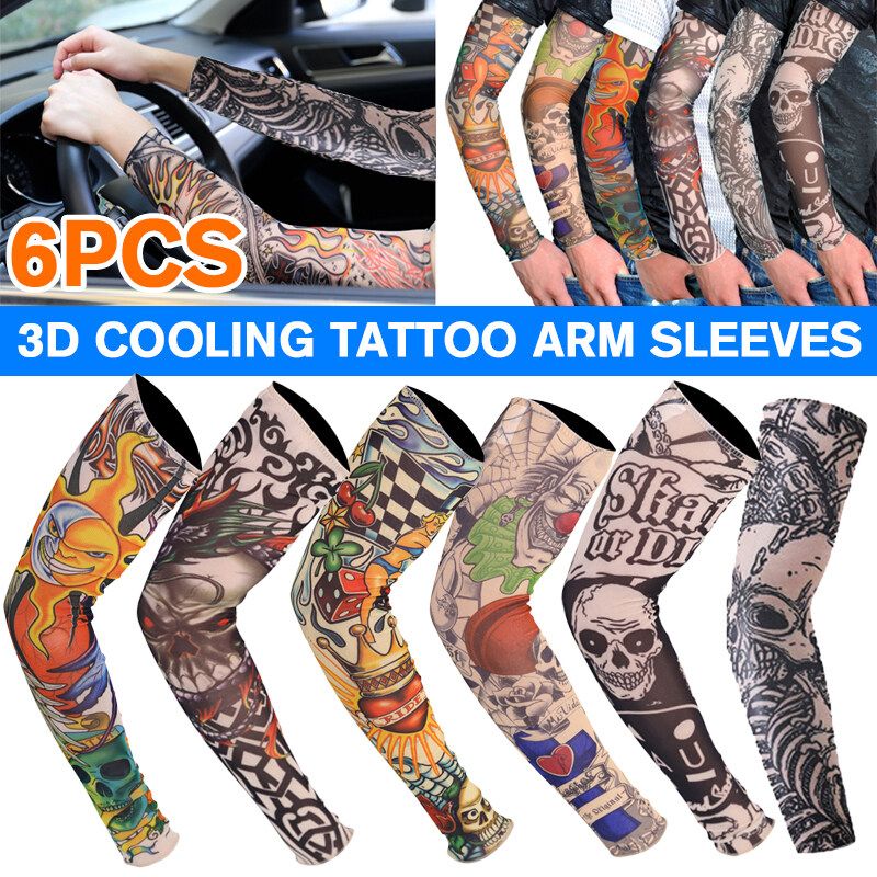 6PCS Unisex Tattoo Sleeves Cooling Nylon Temporary Tattoo Sleeve Arm Stockings Cool Uv Sun Protection
