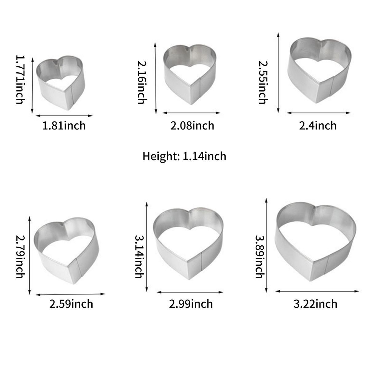 [Heart Shaped]6 different sizes of heart-shaped molds, you can choose the size according to your needs.