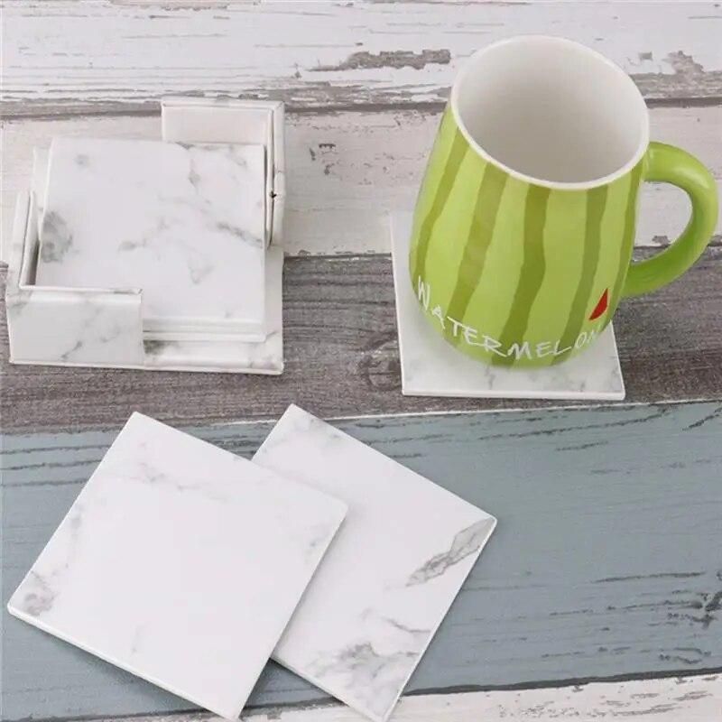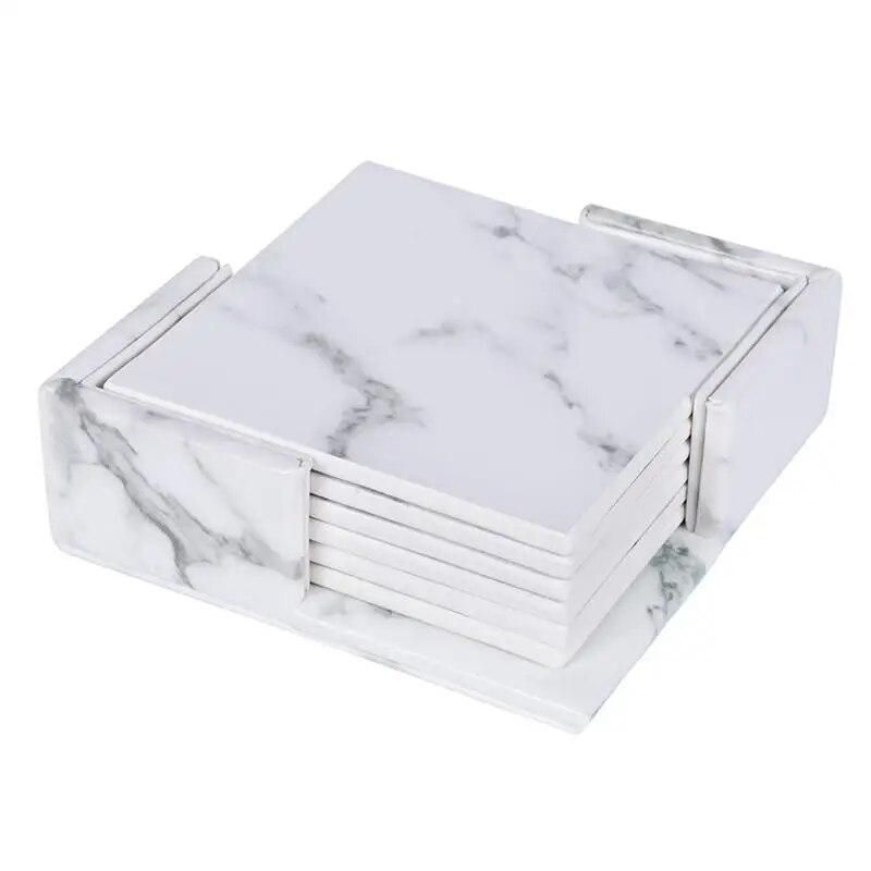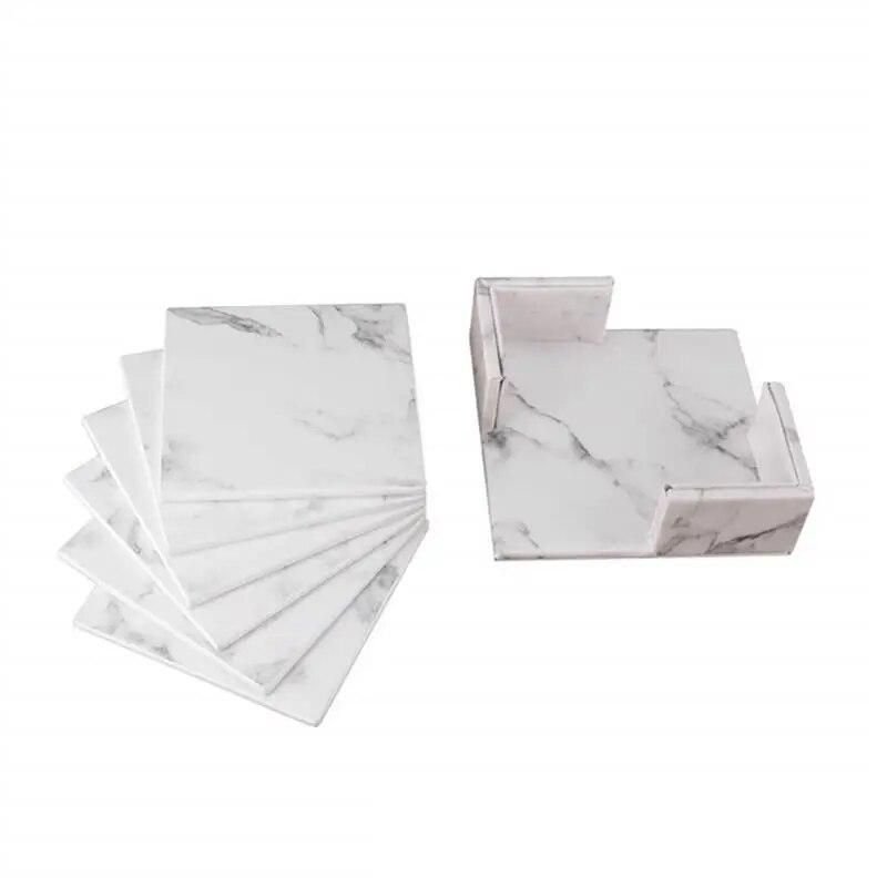 Buy 6pcs Creative PU Leather Marble Coaster Drink Coffee Cup Mat Tea Pad Dining Table Placemats Table Black White Chic Decoration in Nigeria