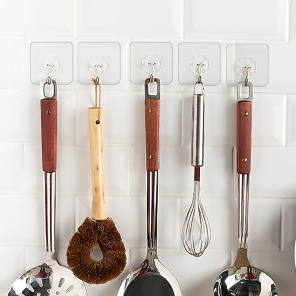 These adhesive hooks can be used on a variety of surfaces, including ceramic, glass, stainless steel surface, door or metal coating furniture, etc.