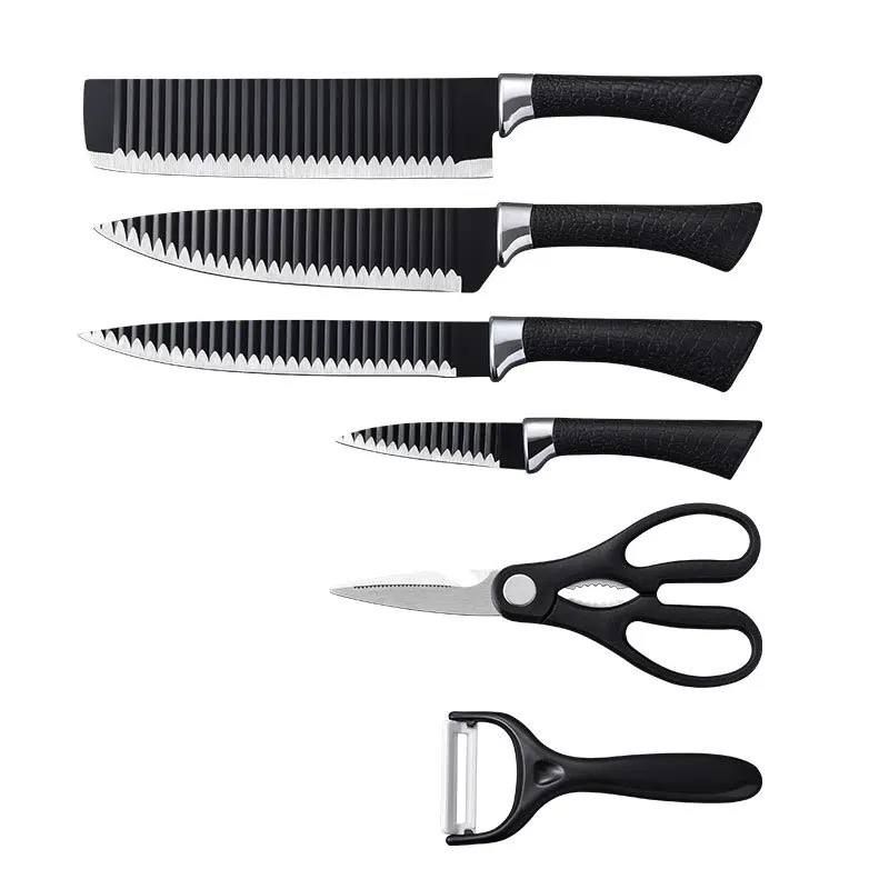 This Sets of Kitchen Knife, consist of different sizes of knives with different function. It consist of kitchen knives, pricing knife, scissors, chicken knife, turkey etc. It is made of metal blade and abs plastic head. It does not rust, very strong, easy to wash and store, a must have for every kitchen and a great value for money.