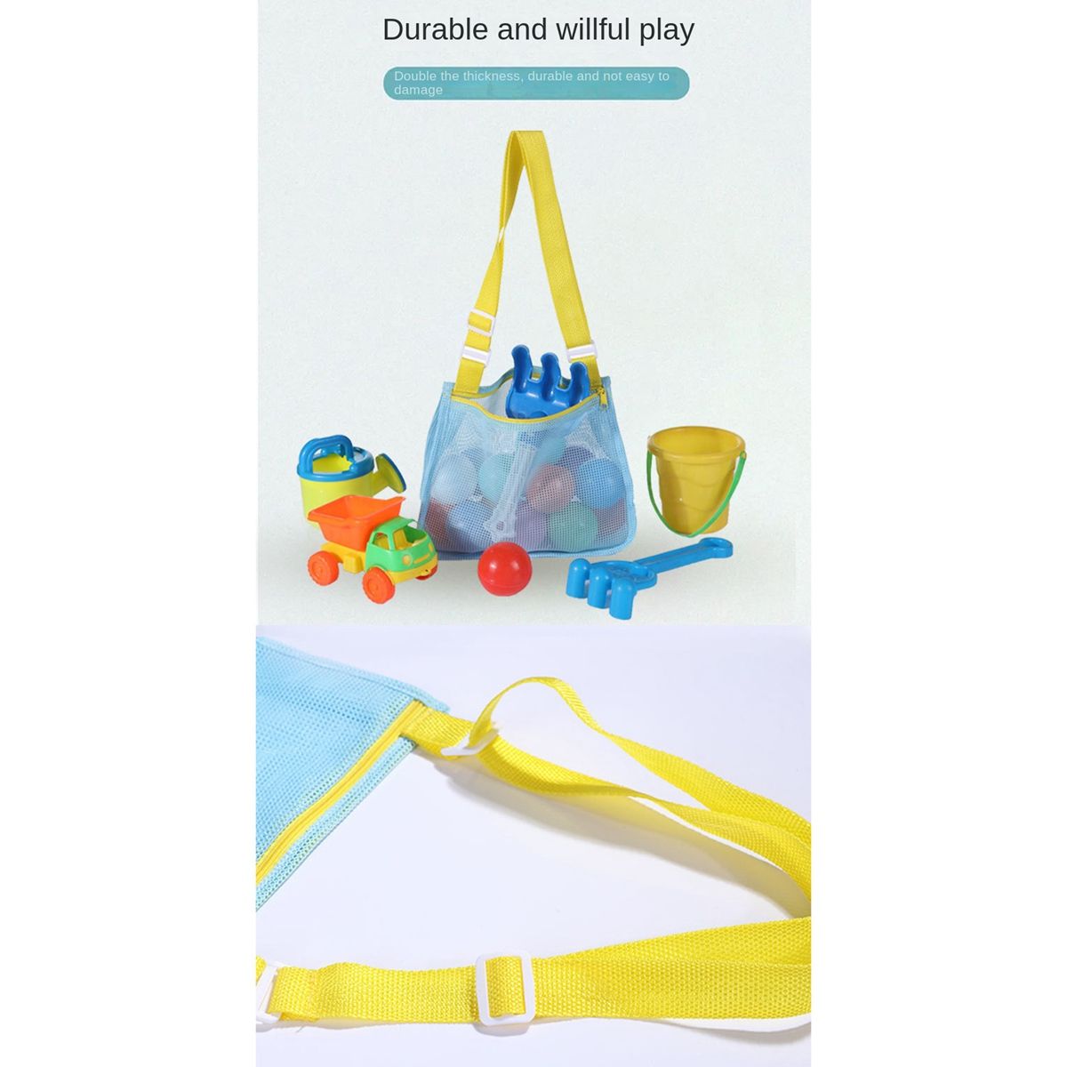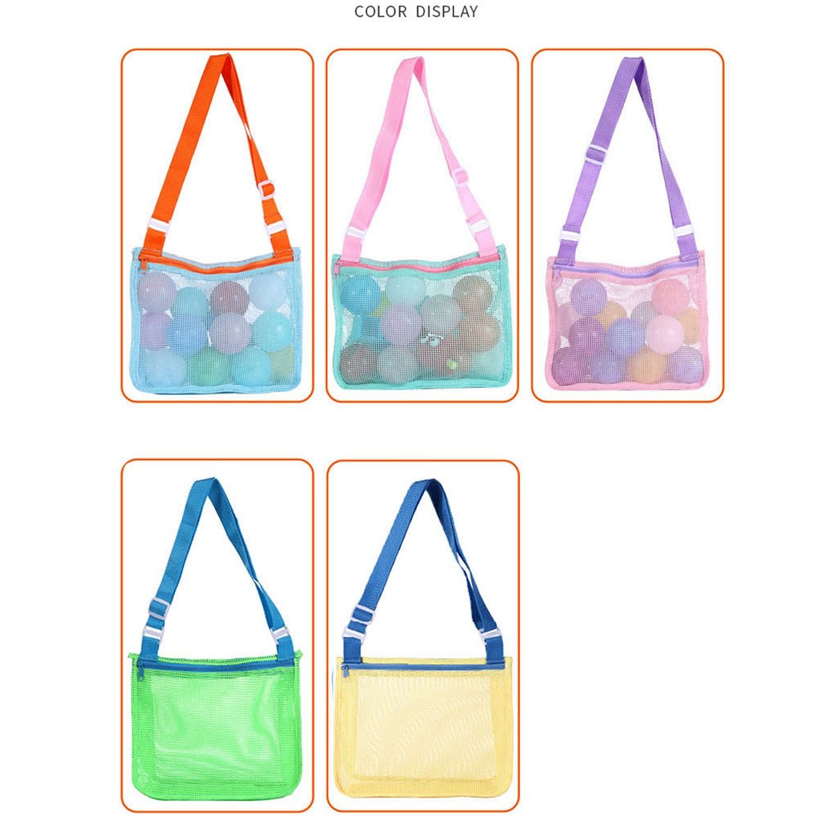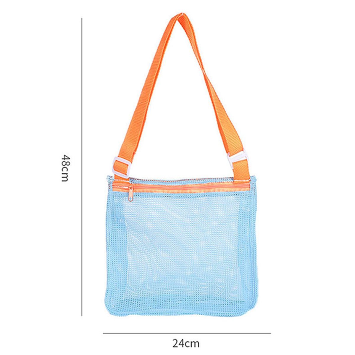 Detailed Information About The Product:Mesh Beach Bags for Kids: matched with different color straps; This mesh beach bag is designed for kids to collect seashells on the beach, besides, it can also be applied as a storage bag to store beach toys and hang them on the wall at home; The bottom is expandable so that you can collect more seashells and store toys, add fun to kids' beach time